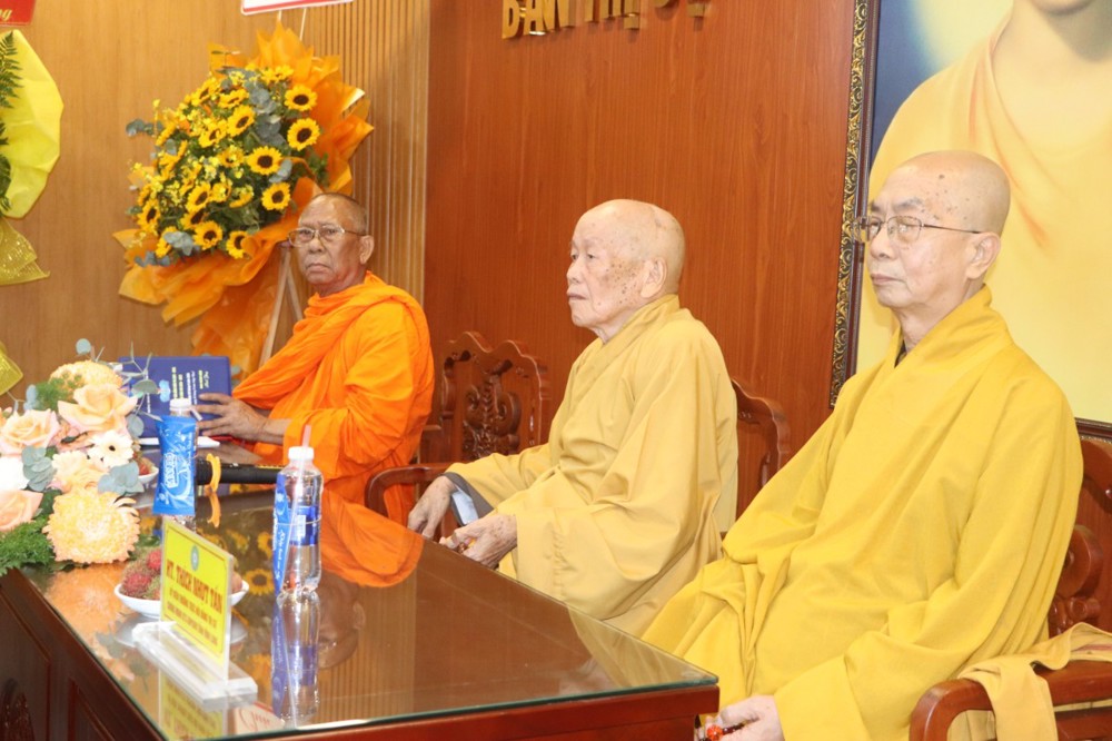 Quang lâm tham dự Hội nghị có HT.Thích Như Tước – UV TT HĐCM, Chứng minh BTS GHPGVN tỉnh HT.Thạch Sok Xane – Phó Chủ tịch HĐTS, Trưởng ban BTS GHPGVN tỉnh; HT.Thích Nhựt Tấn – UV Thường trực HĐTS, Chứng minh BTS GHPGVN tỉnh; TT.Thích Minh Nhẫn – UV Thư ký HĐTS, Phó Chánh Văn phòng 2 Trung ương GHPGVN; TT.Thích Phước Nghiêm – UV Thường trực HĐTS, Phó Chánh Văn phòng 2 Trung ương GHPGVN; HT.Thích Trí Minh – UV HĐTS, Phó Trưởng ban Thường trực BTS GHPGVN tỉnh; TT.Thích Lệ Lạc – UV HĐTS, Phó Trưởng ban Thường trực BTS GHPGVN tỉnh; TT. Thích Trí Thọ UV HĐTS, Phó Trưởng ban Thường trực BTS GHPGVN tỉnh; TT.Thích Tâm Khiết – Phó Trưởng ban kiêm Chánh Thư ký BTS GHPGVN tỉnh; Cùng chư Tôn đức thành viên BTS GHPGVN tỉnh Vĩnh Long tham dự đông đủ.