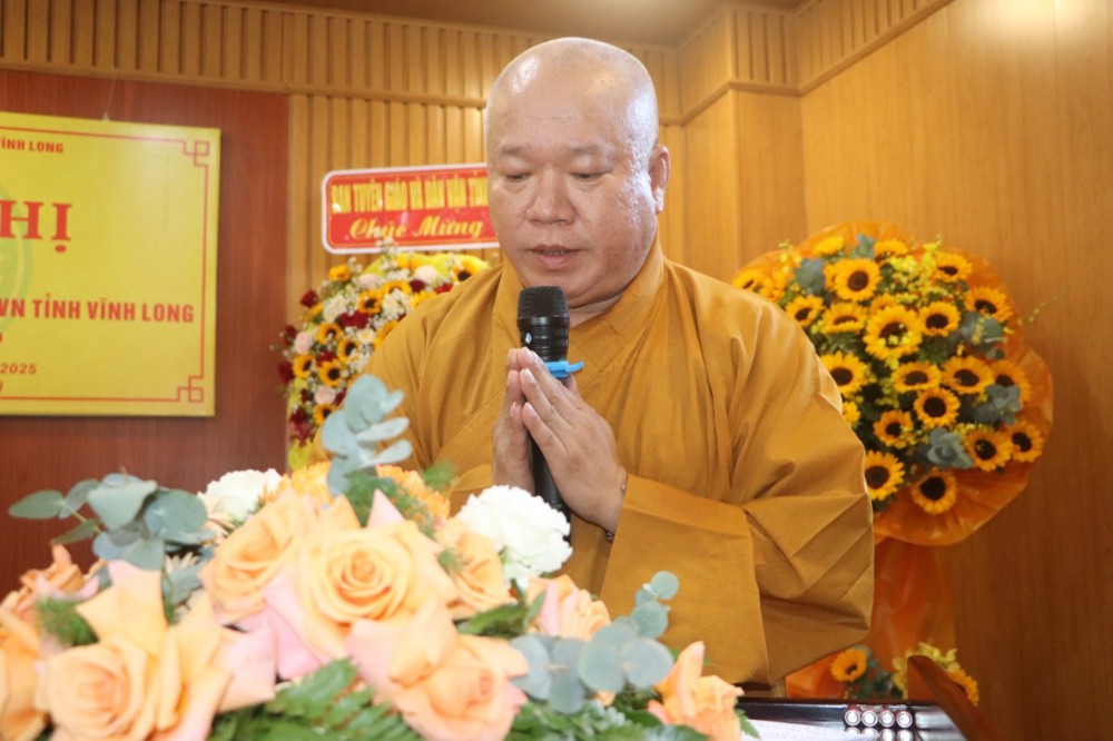 Phát biểu tại hội nghị, TT.Thích Minh Nhẫn – UV Thư ký HĐTS, Phó Chánh Văn phòng 2 Trung ương GHPGVN thay mặt lãnh đạo Văn phòng 2 Trung Ương Giáo hội đã định hướng cho Hội nghị thảo luận về việc công cử 12 ban chuyên môn theo tinh thần thông tư 258/TT-HĐTS của trung ương giáo hội về việc về việc dừng hoạt động các Ban Trị sự GHPGVN cấp quận, huyện, thị xã, thành phố trực thuộc tỉnh, và hướng dẫn Ban Trị sự sáp nhập tỉnh theo quy định của nhà nước có hiệu lực từ ngày 01 tháng 07 năm 2025. Theo đó Thượng tọa đánh giá cao sự chuẩn bị chu đáo, tinh thần trách nhiệm và sự đồng bộ trong triển khai Phật sự của chư Tôn đức lãnh đạo tỉnh Vĩnh Long. Đồng thời nhắc nhở lưu ý về việc đảm bảo cơ sở vật chất, hồ sơ lưu trữ, cho Văn phòng BTS tỉnh mới, phù hợp với quy mô tổ chức sau sáp nhập.
