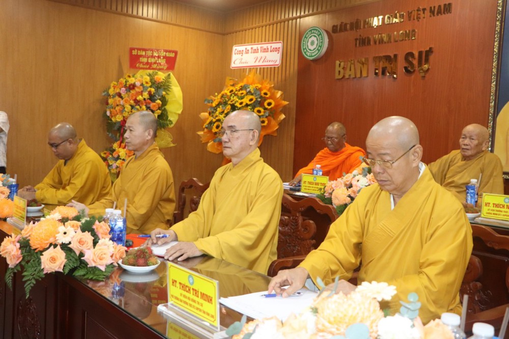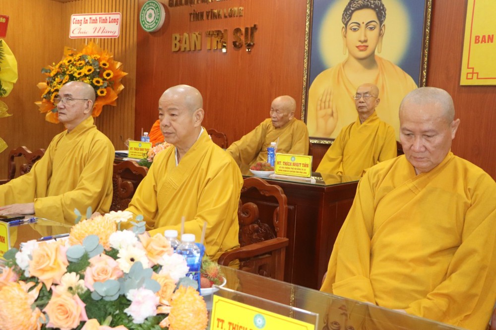 Quang lâm tham dự Hội nghị có HT.Thích Như Tước – UV TT HĐCM, Chứng minh BTS GHPGVN tỉnh HT.Thạch Sok Xane – Phó Chủ tịch HĐTS, Trưởng ban BTS GHPGVN tỉnh; HT.Thích Nhựt Tấn – UV Thường trực HĐTS, Chứng minh BTS GHPGVN tỉnh; TT.Thích Minh Nhẫn – UV Thư ký HĐTS, Phó Chánh Văn phòng 2 Trung ương GHPGVN; TT.Thích Phước Nghiêm – UV Thường trực HĐTS, Phó Chánh Văn phòng 2 Trung ương GHPGVN; HT.Thích Trí Minh – UV HĐTS, Phó Trưởng ban Thường trực BTS GHPGVN tỉnh; TT.Thích Lệ Lạc – UV HĐTS, Phó Trưởng ban Thường trực BTS GHPGVN tỉnh; TT. Thích Trí Thọ UV HĐTS, Phó Trưởng ban Thường trực BTS GHPGVN tỉnh; TT.Thích Tâm Khiết – Phó Trưởng ban kiêm Chánh Thư ký BTS GHPGVN tỉnh; Cùng chư Tôn đức thành viên BTS GHPGVN tỉnh Vĩnh Long tham dự đông đủ.