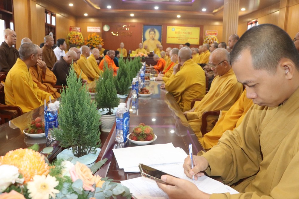 Phát biểu tại hội nghị, TT.Thích Minh Nhẫn – UV Thư ký HĐTS, Phó Chánh Văn phòng 2 Trung ương GHPGVN thay mặt lãnh đạo Văn phòng 2 Trung Ương Giáo hội đã định hướng cho Hội nghị thảo luận về việc công cử 12 ban chuyên môn theo tinh thần thông tư 258/TT-HĐTS của trung ương giáo hội về việc về việc dừng hoạt động các Ban Trị sự GHPGVN cấp quận, huyện, thị xã, thành phố trực thuộc tỉnh, và hướng dẫn Ban Trị sự sáp nhập tỉnh theo quy định của nhà nước có hiệu lực từ ngày 01 tháng 07 năm 2025. Theo đó Thượng tọa đánh giá cao sự chuẩn bị chu đáo, tinh thần trách nhiệm và sự đồng bộ trong triển khai Phật sự của chư Tôn đức lãnh đạo tỉnh Vĩnh Long. Đồng thời nhắc nhở lưu ý về việc đảm bảo cơ sở vật chất, hồ sơ lưu trữ, cho Văn phòng BTS tỉnh mới, phù hợp với quy mô tổ chức sau sáp nhập.