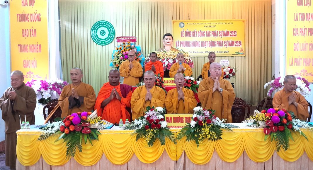 Chiều ngày 22/12/2023 (nhằm ngày 10/11 năm Quý Mão) Ban Trị sự GHPGVN tỉnh Trà Vinh đã long trọng tổ chức Hội nghị tổng kết công tác Phật sự năm 2023, đề ra phương hướng hoạt động năm 2024, Bế giảng khóa bồi dưỡng hành chánh Giáo hội và pháp luật Nhà nước liên quan đến công tác tôn giáo năm 2023 tại văn phòng Ban Trị sự – chùa Lưỡng Xuyên (P.1, TP.Trà Vinh).