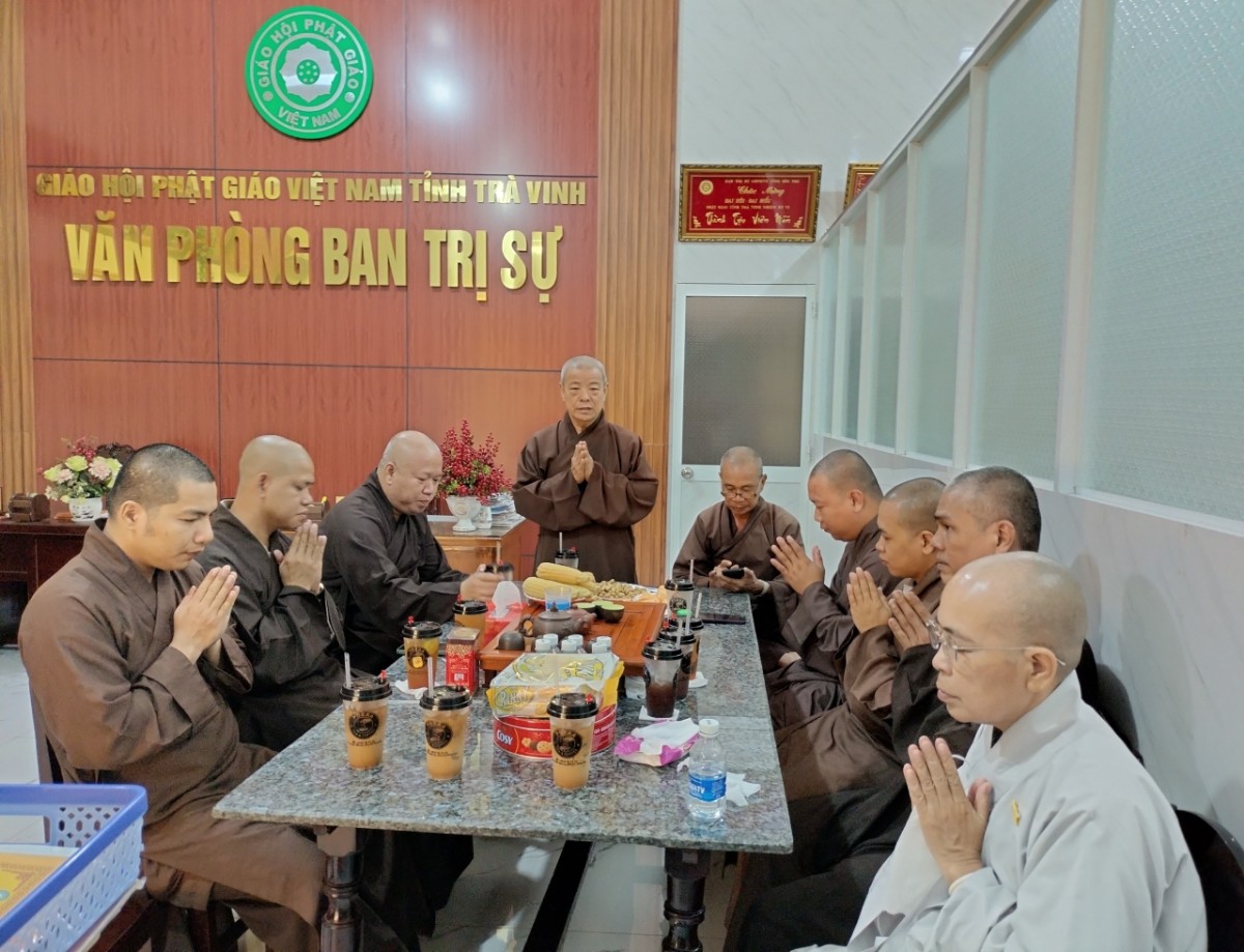 Nhân dịp khai Xuân Giáp Thìn, chư Tôn đức Văn phòng BTS GHPGVN tỉnh Trà Vinh, Văn phòng Ban Giám hiệu Trường TCPH tỉnh đã họp mặt đầu năm trong không khí ấm áp, thắm tình pháp lữ tại Văn phòng BTS – chùa Lưỡng Xuyên (P.1, TP.Trà Vinh, tỉnh Trà Vinh) vào sáng mùng 9 tháng Giêng (ngày 18/2/2024).