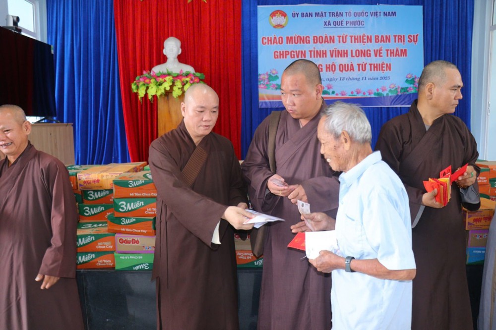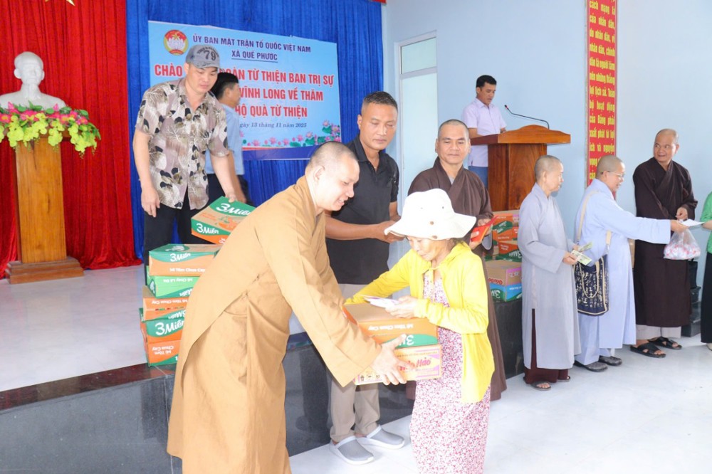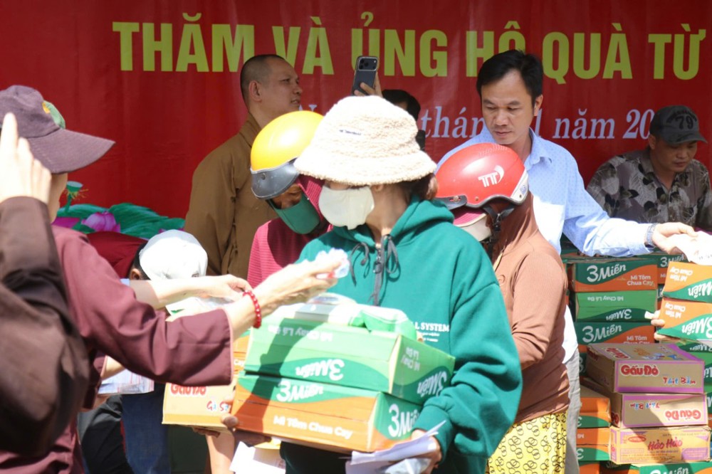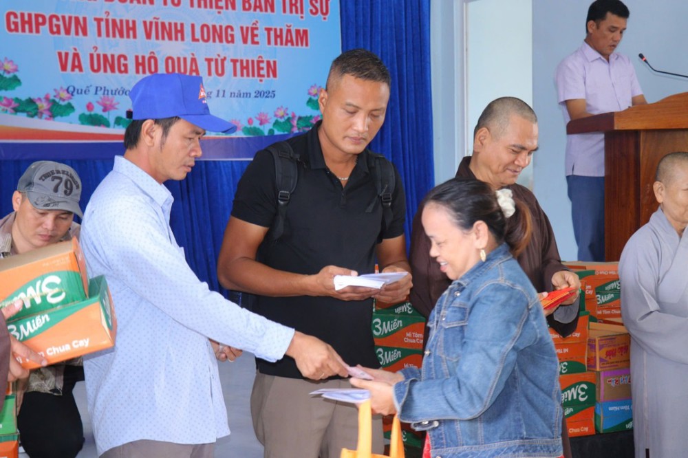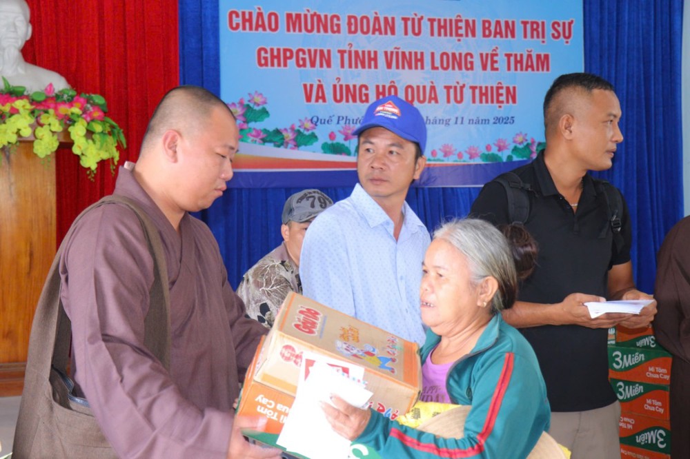 Phát biểu trong chuyến đi, ĐĐ. Thích Trí Thuận chia sẻ: “Chúng tôi đến đây không chỉ mang theo những phần quà nhỏ, mà còn gửi gắm tấm lòng của Tăng Ni, Phật tử tỉnh Vĩnh Long – những người luôn hướng về đồng bào đang gặp hoạn nạn. Mong rằng, với tinh thần từ bi của đạo Phật và tình thương của dân tộc, mọi người sẽ cùng nhau vượt qua khó khăn, sớm ổn định cuộc sống.”