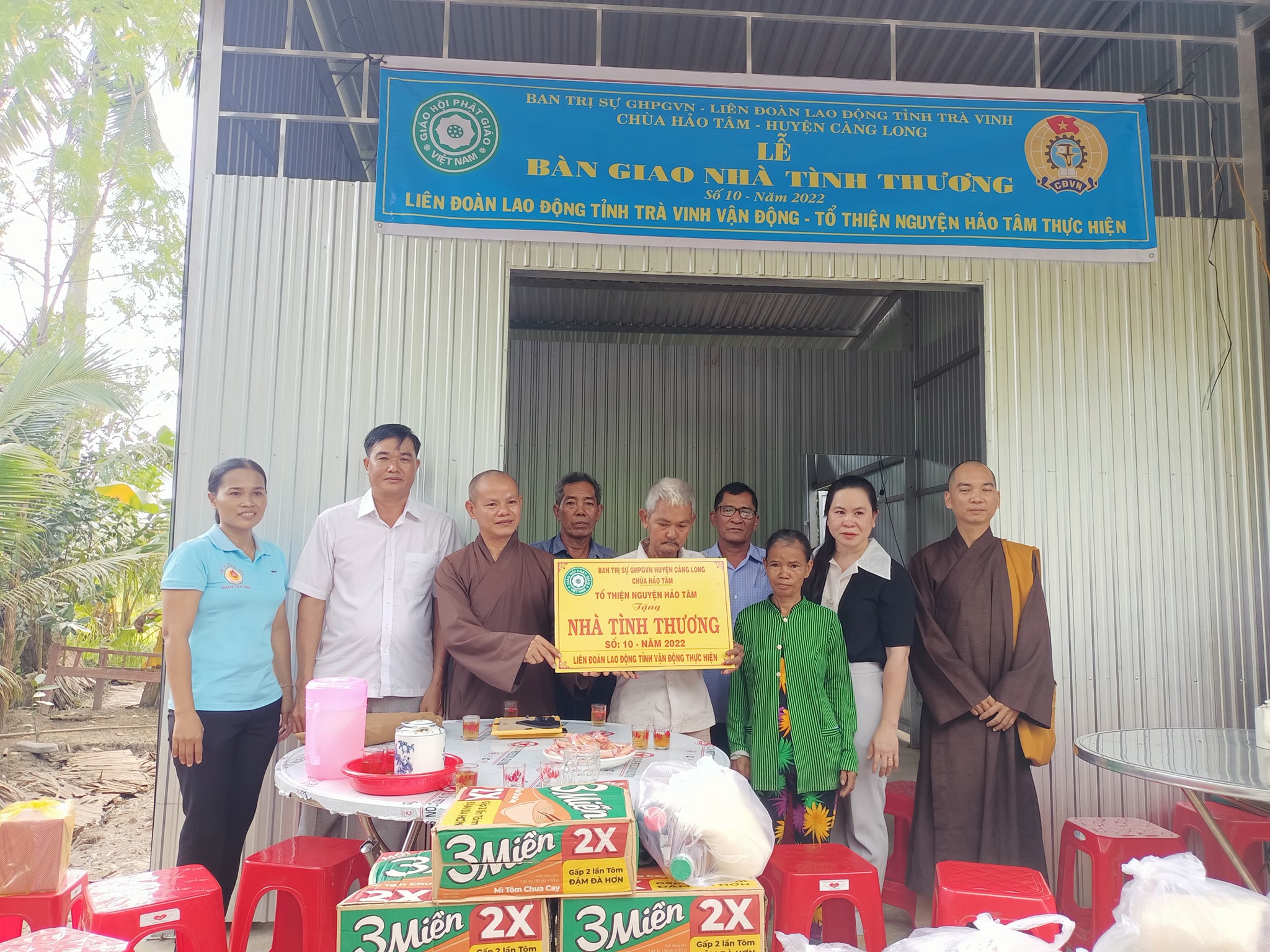 Chiều ngày 16/10/2022 Chùa Hảo Tâm – Tổ thiện nguyện Hảo Tâm bàn giao nhà Tình thương số 10, năm 2022 cho hộ anh: Kim Phải và chị Nguyễn Thị Danh, Ấp Nhứt, xã Tân Hùng, huyện Tiểu Cần.