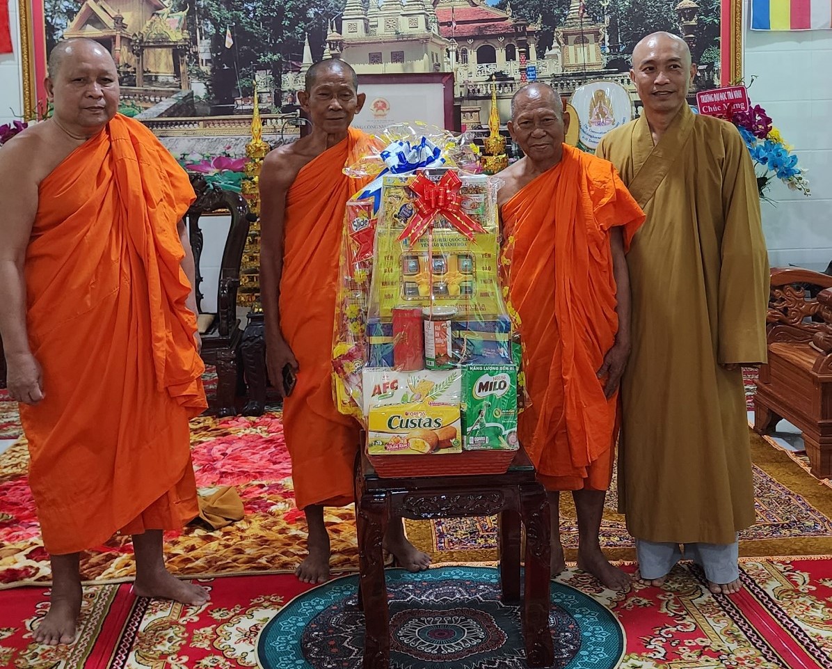 Đoàn đã đến chúc tết HT. Thạch Sok Xane – Phó Chủ tịch HĐTS, Trưởng BTS GHPGVN tỉnh; HT. Kim Thone – UV HĐTS, Chứng minh BTS GHPGVN huyện Châu Thành; HT. Sơn Triều – Trưởng BTS GHPGVN huyện Châu Thành cùng các tự, viện Phật giáo Nam tông trên địa bàn huyện Châu Thành và TP. Trà Vinh.