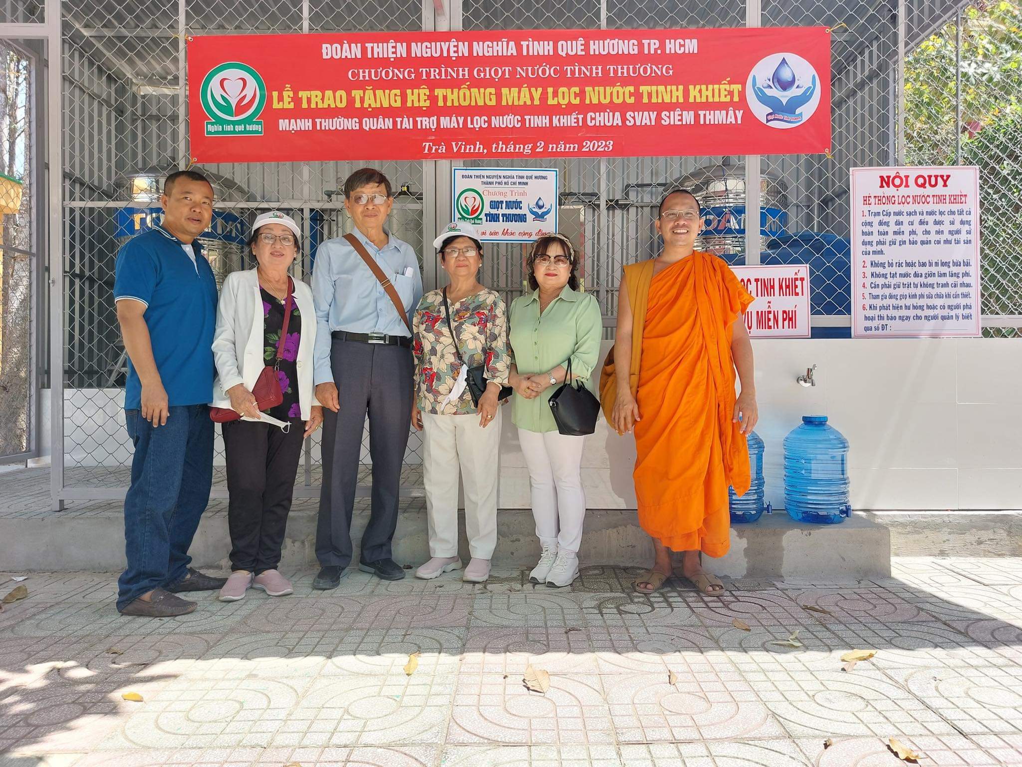 Ngày 16/2/2023 (nhằm ngày 26/1 năm Quý Mão) Đoàn Thiện nguyện Nghĩa tình Quê hương tại (TP.HCM) kết hợp cùng chùa Thôn Dôn tại (TP.Rạch Giá, tỉnh Kiên Giang) và chính quyền địa phương tổ chức Lễ bàn giao 10 hệ thống máy lọc nước tinh khiết đến 10 ngôi chùa Phật giáo Nam tông Khmer và 200 phần quà cho bà con khó khăn trong tỉnh Trà Vinh.