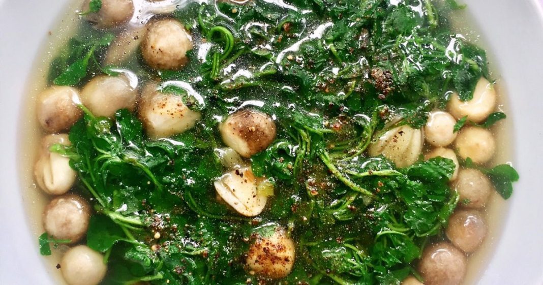 Món canh xà lách xoong nấm rơm bổ dưỡng