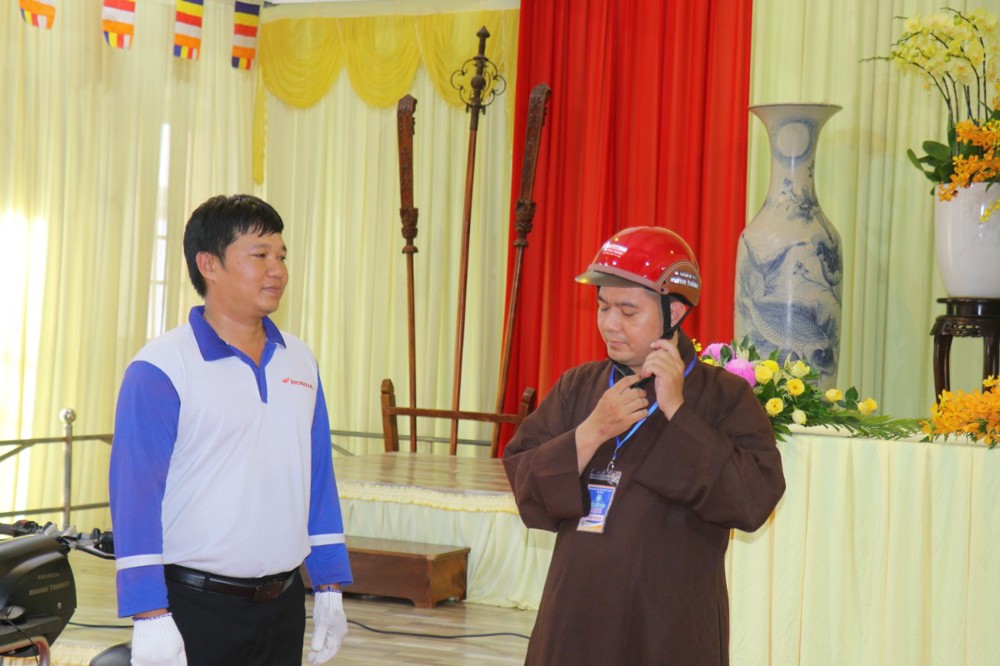 Kết thúc buổi học, chư Tăng Ni nhiệt tình tham gia phần giao lưu, cùng giải đáp câu hỏi và xử lý các tình huống giả định. Mỗi người còn được trao tặng một chiếc mũ bảo hiểm đạt chuẩn – như lời nhắc nhở thiết thực, luôn giữ gìn an toàn cho bản thân trên mọi nẻo đường.