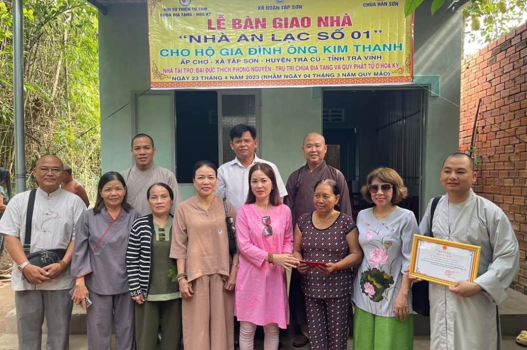 Trước đó, ngày 21/4/2023, chùa Hàn Sơn cũng phối hợp với chính quyền địa phương tổ chức bàn giao căn nhà “Mái ấm gia đình số 16″ cho hộ gia đình chị Kim Thị Thuỳ Dung ở (ấp Bến Trị, xã Tập Sơn, huyện Trà Cú, tỉnh Trà Vinh).