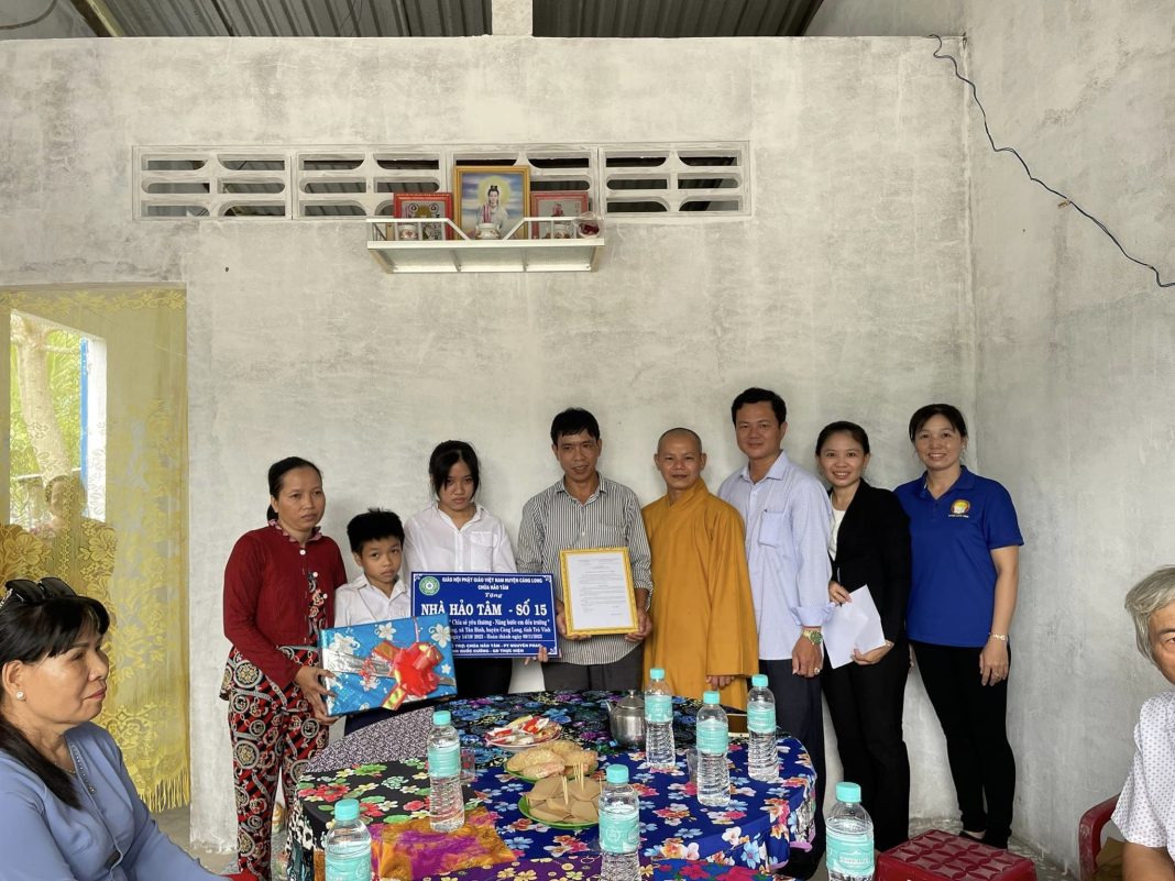 Ngày 03/12/2023 (nhằm ngày 21 tháng 10 năm Quý Mão) Đại đức Thích Minh Độ – Phó BTS tỉnh, Trưởng BTS GHPGVN huyện Càng Long, Trụ trì chùa Hảo Tâm phối hợp cùng với chính quyền xã Tân Bình (Càng Long) tổ chức bàn giao nhà tình thương số 15.