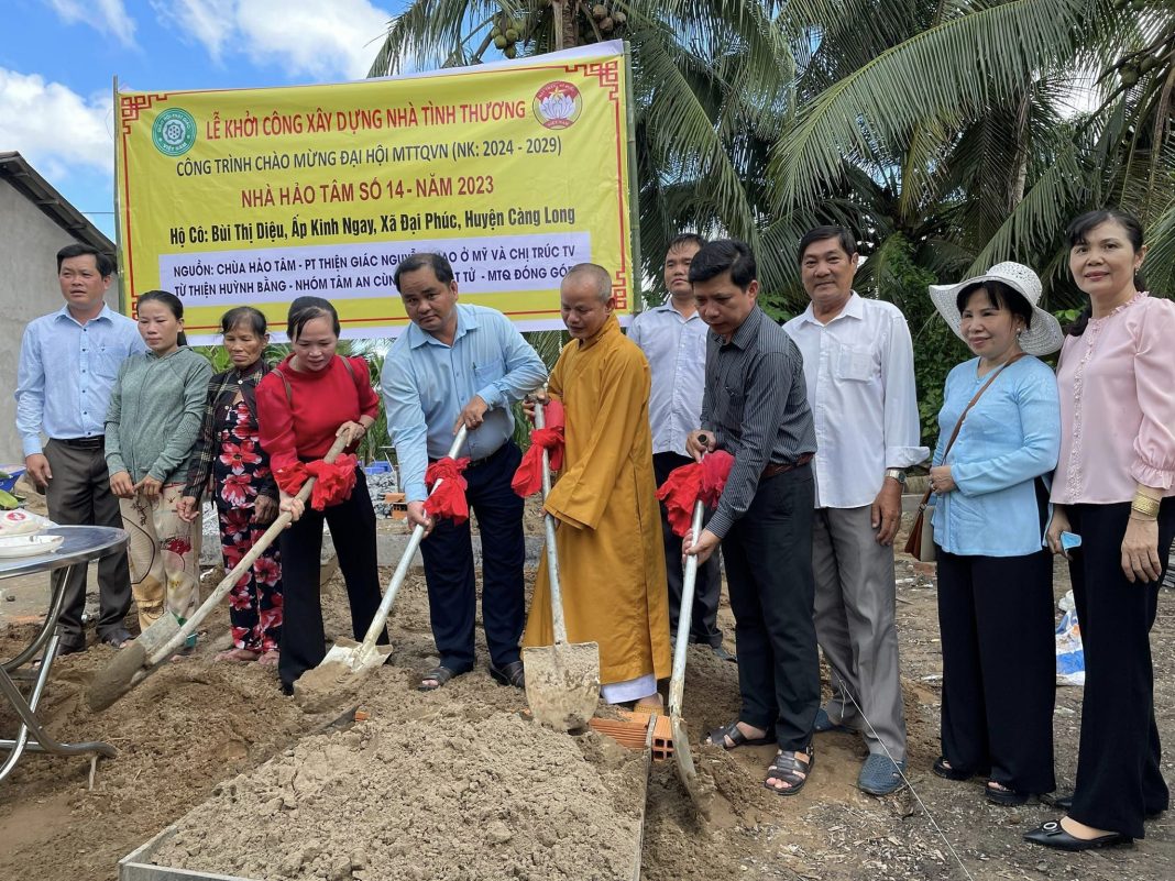 Sáng ngày 11/10/2023, ĐĐ. Thích Minh Độ – Phó Trưởng BTS GHPGVN tỉnh, Trưởng BTS GHPGVN huyện Càng Long, trụ trì chùa Hảo Tâm phối hợp với UBMTTQ Việt Nam huyện khởi công xây dựng “Nhà hảo tâm số 14” tại ấp Kinh Ngay, xã Đại Phúc, huyện Càng Long, tỉnh Trà Vinh.
