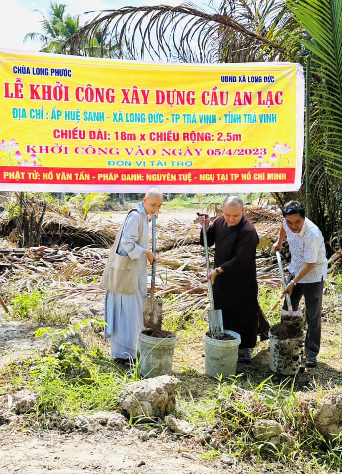Sáng ngày 05/04/2023, ĐĐ. Thích Thiện Phước, Phó Ban Từ thiện xã hội GHPGVN tỉnh, trụ trì chùa Long Phước (xã Long Đức) đã kết hợp cùng chính quyền địa phương và nhà tại trợ khởi công xây dựng cầu An Lạc tại ấp Huệ Sanh, xã Long Đức, Tp. Trà Vinh, tỉnh Trà Vinh.