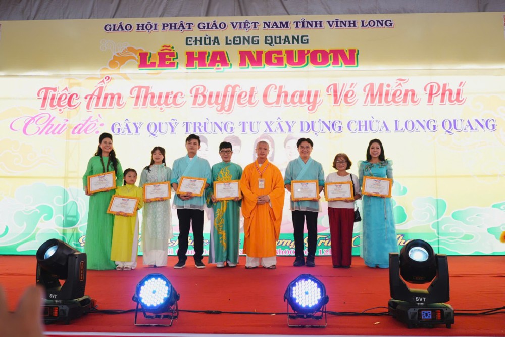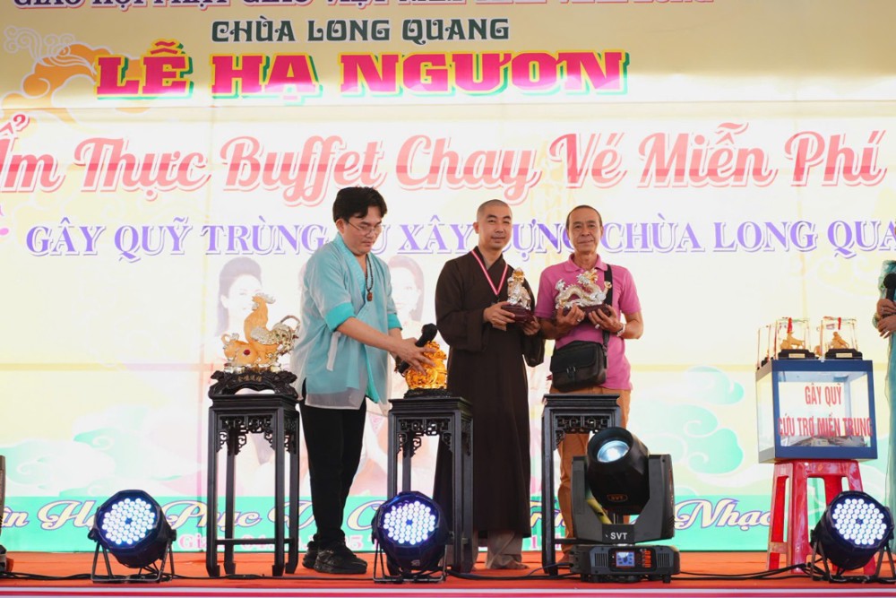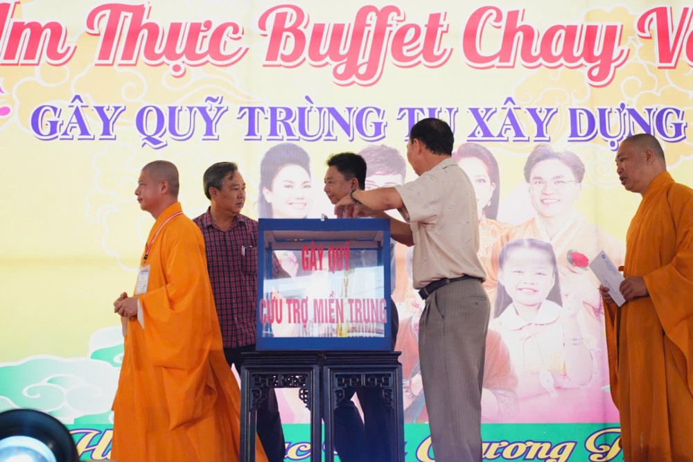 Trước những thiệt hại nặng nề của miền Trung do bão lũ, chùa Long Quang quyết định tạm dừng kế hoạch gây quỹ trùng tu chùa, ưu tiên toàn bộ tịnh tài để cứu trợ khẩn cấp. Mỗi tấm lòng được gieo xuống trong buổi tiệc chay là một nghĩa cử từ bi, là điểm tựa giúp nhiều gia đình vượt qua hoạn nạn.