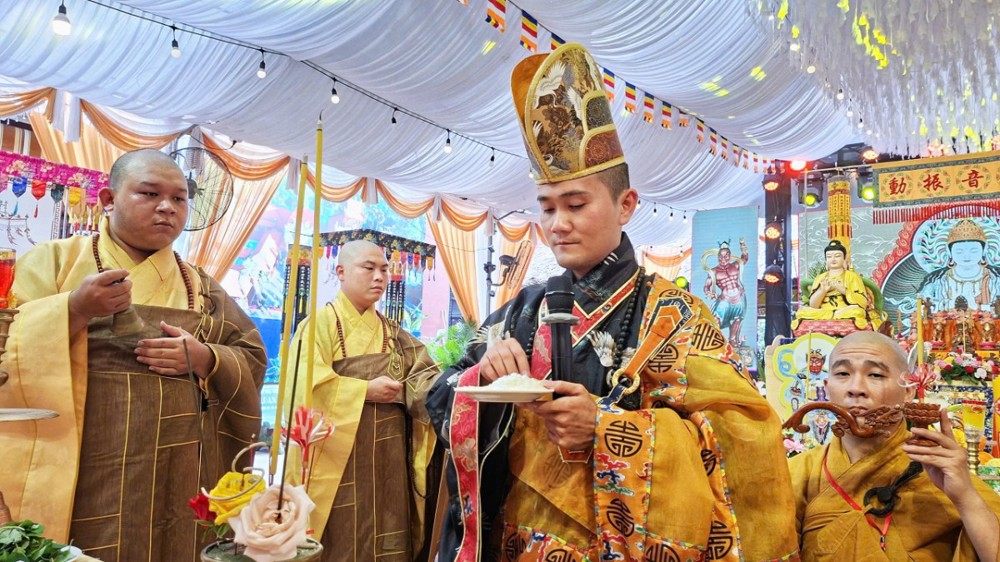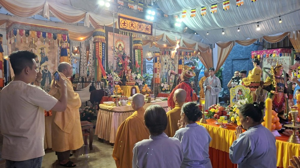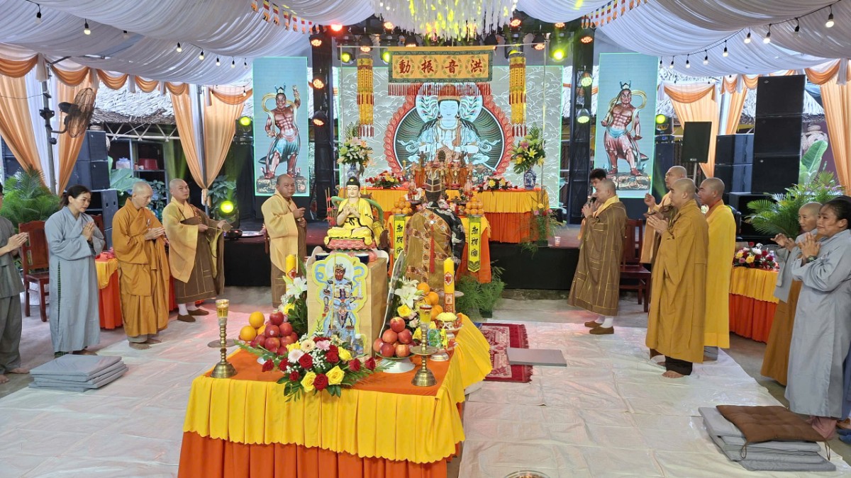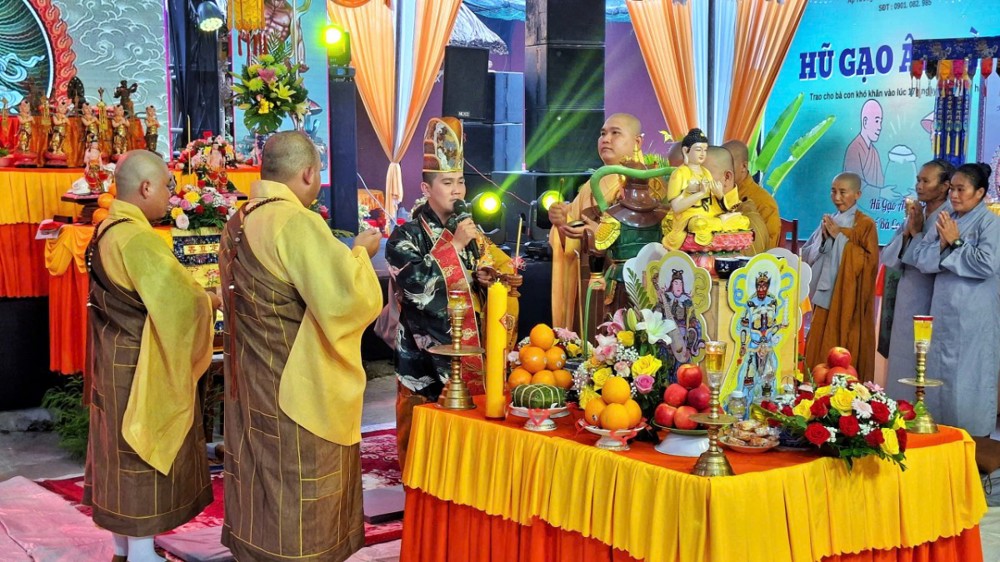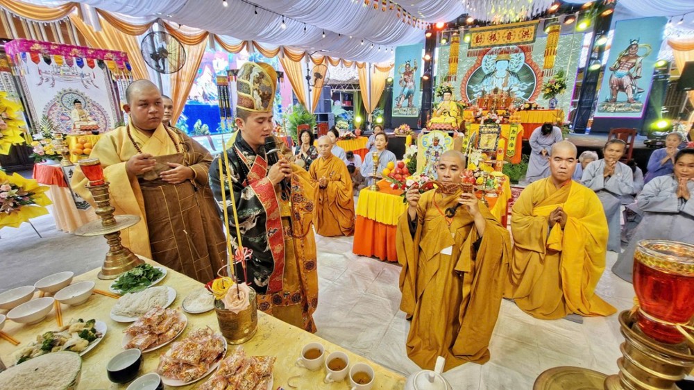 Khóa lễ chuẩn tế chính thức bắt đầu vào lúc 14 giờ. Dù trời bất chợt đổ mưa lớn, gây nhiều trở ngại cho công tác tổ chức, nhưng không làm giảm đi lòng thành kính của quý đạo hữu. Bà con Phật tử vẫn đội mưa tham dự, giữ vững không khí trang nghiêm, khiến buổi lễ thêm phần xúc động và ý nghĩa.