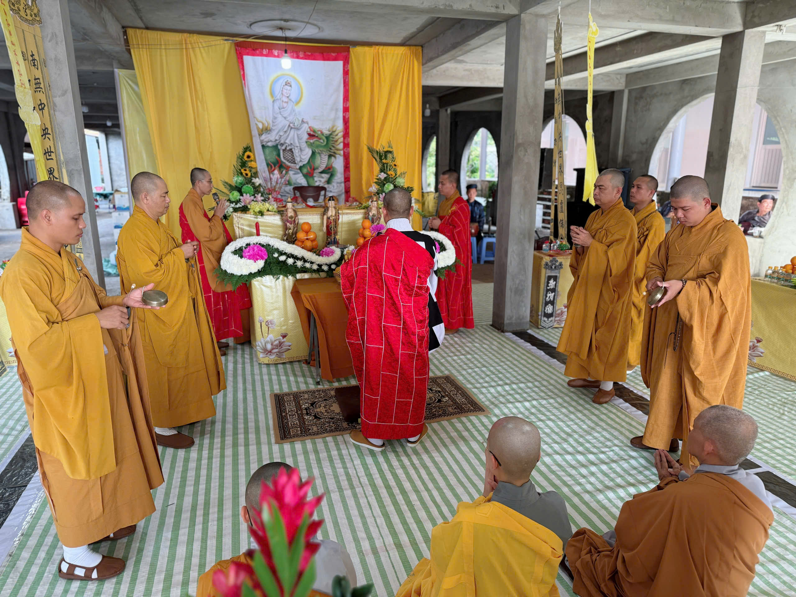 Sau đó, chư Tôn đức Ban Kinh sư đã cử hành lễ an vị tôn tượng Bồ tát Quán Thế Âm: sái tịnh, gia trì mật chú, niệm Phật…