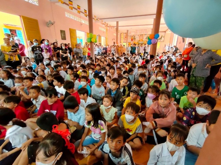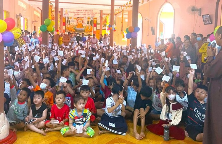 Theo đó, 500 phần quà và lồng đèn được đóng góp từ Gia đình Phật tử Lưu Lệ Thanh và các Phật tử tại TP.HCM hỗ trợ được trao đến cho các em học sinh, với tổng tiền của buổi tặng quà trên 20 triệu đồng.