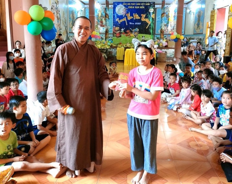 Được sự cho phép của Hoà thượng Thích Thiện Thông – Thành viên HĐCM GHPGVN, Chứng minh BTS GHPGVN tỉnh, Trụ trì chùa Vạn Hoà, chiều ngày 23/09/2023 (nhằm ngày 09 tháng 08 năm Quý Mão) Đại đức Thích Thiện Lộc – Phó Chánh Văn phòng Ban Trị sự GHPGVN tỉnh, Chánh Thư ký BTS GHPGVN huyện Cầu Kè cùng các mạnh thường quân và Phật tử đã tiến hành tổ chức chương trình “Trung thu yêu thương” cho các em học sinh tại thị trấn Cầu Kè, huyện Cầu Kè, tỉnh Trà Vinh.
