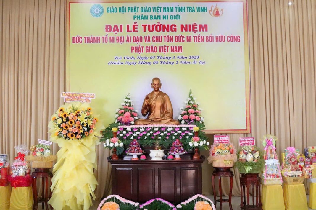 Tại buổi lễ, HT. Thích Tâm Linh – Chứng minh BTS GHPGVN tỉnh Trà Vinh, ban đạo từ tán dương công đức chư Ni PBNG tỉnh, trên tinh thần tri ân và báo ân của người con Phật đã trang nghiêm tổ chức Lễ tưởng niệm Đức Thánh Tổ Ni Đại Ái Đạo Kiều Đàm Di và chư Ni tiền bối hữu công Phật giáo Việt Nam.