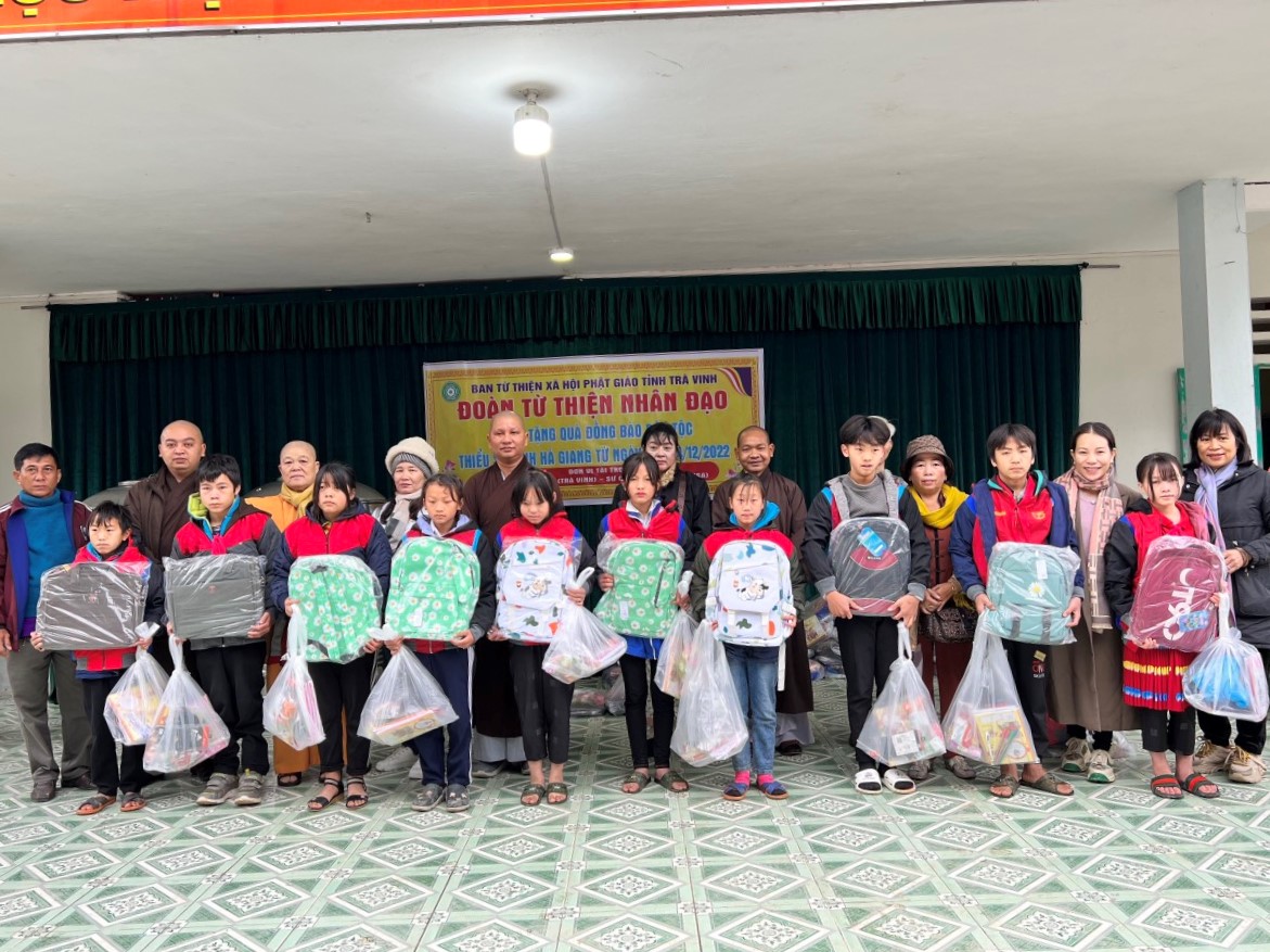 PGTV – Sáng ngày 11/12/2022, Ban từ thiện xã hội GHPGVN tỉnh Trà Vinh do ĐĐ. Thích Trí Định – Phó Trưởng Ban Từ thiện Xã hội GHPGVN tỉnh Trà Vinh làm trưởng đoàn đã tổ chức chuyến thiện nguyện thăm tặng quà cho bà con đồng bào dân tộc thiểu số tại tỉnh Hà Giang.