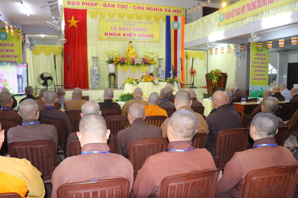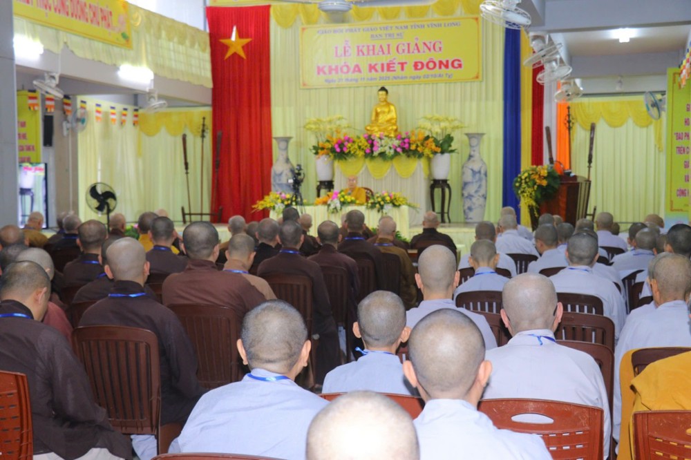 Trong lời sách tấn, Hòa thượng ân cần nhắc nhở đại chúng bằng giọng nói trầm tĩnh nhưng thấm sâu, như từng giọt pháp cam lộ thấm vào tâm khảm hành giả: “Trên mỗi nấc thang của hành trình tu tập, chúng ta phải biết gìn giữ và trân quý như đang bảo hộ chính hơi thở của mình, bởi chỉ một khoảnh khắc lơ là cũng đủ khiến công trình tu tập lung lay. Ý niệm xuất gia cần được nuôi dưỡng từng ngày, từng sát-na; giới luật phải được giữ bằng tất cả sự tinh tấn, khiêm cung và chánh niệm, thì đạo nghiệp mới có thể tăng trưởng. Bảy ngày kiết đông tuy ngắn ngủi, nhưng chính là cơ hội hy hữu để hành giả soi rọi lại tự thân, thúc liễm thân tâm và làm mới con đường đạo mà mình đã chọn lựa.”