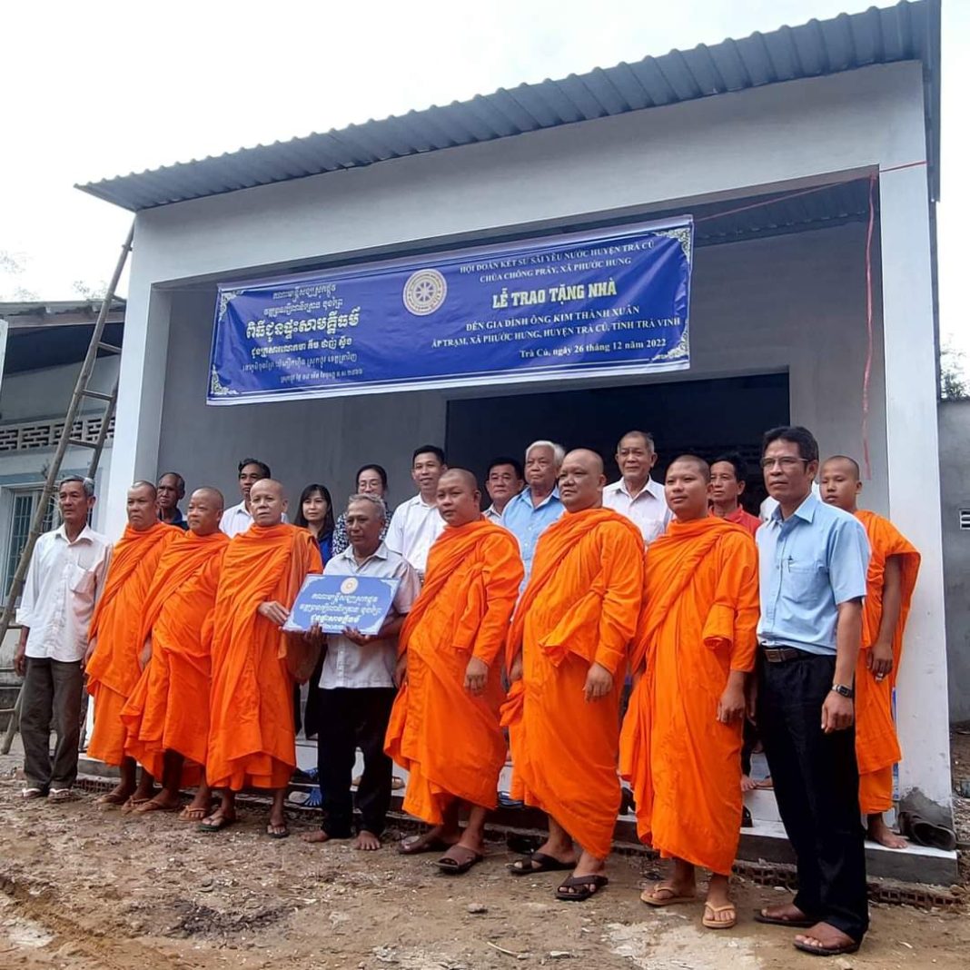 Chiều ngày 26/12/2022 ( nhằm ngày 4/12 năm Nhâm Dần ) Thường trực Hội Đoàn kết Sư sãi yêu nước (Hội ĐKSSYN) huyện Trà Cú phối hợp cùng chùa Chông Prây và chính quyền địa phương tổ chức Lễ trao tặng nhà Đại đoàn kết cho hộ gia đình khó khăn về nhà ở tại ( ấp Trạm, xã Phước Hưng, huyện Trà Cú ).