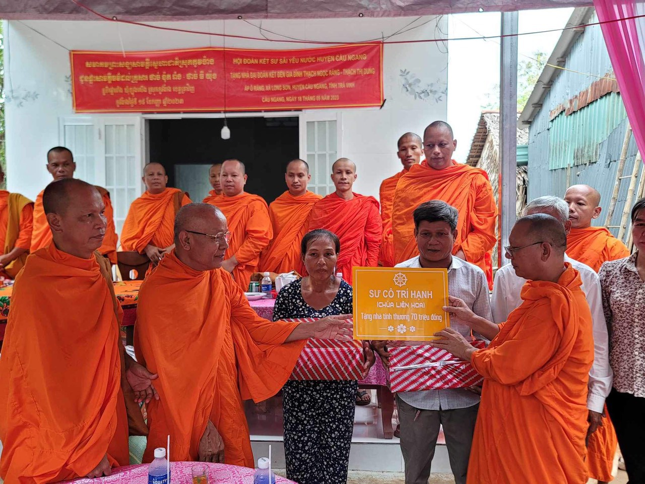 Với tấm lòng “Từ bi trí tuệ” của đạo Phật, Chiều ngày 18/9/2023 (nhằm ngày 4/8 năm Quý Mão) Thường trực Hội Đoàn kết Sư sãi yêu nước huyện Cầu Ngang đã kết hợp với chính quyền địa phương tổ chức Lễ trao tặng 3 căn nhà Đại đoàn kết cho các gia đình hộ nghèo có hoàn cảnh khó khăn về nhà ở tại 3 xã trong huyện Cầu Ngang, tỉnh Trà Vinh.