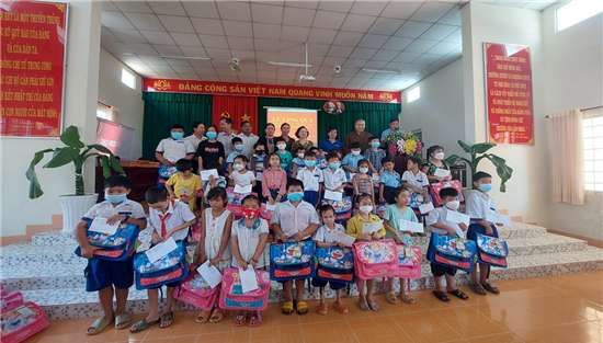 Sau lễ khởi công xây dựng cầu, Đoàn đã trao tặng 100 phần quà cho 100 em học sinh Trường Tiểu học có hoàn cảnh khó khăn trên địa bàn (xã Tân An, huyện Càng Long), mỗi phần quà bao gồm: tiền mặt 400 ngàn đồng, cặp, quần áo, bánh kẹo và sữa.