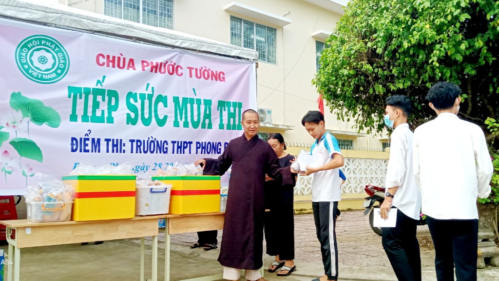 Trong đợt tiếp sức mùa thi năm nay, chư Tăng chùa Phước Tường, với sự đóng góp của các mạnh thường quân gần xa, đã hỗ trợ cho các em hơn 1.000 phần ăn và nước suối. Đây là sự khích lệ không nhỏ với các em, phần nào giảm bớt sự lo âu trước khi bước vào phòng thi.
