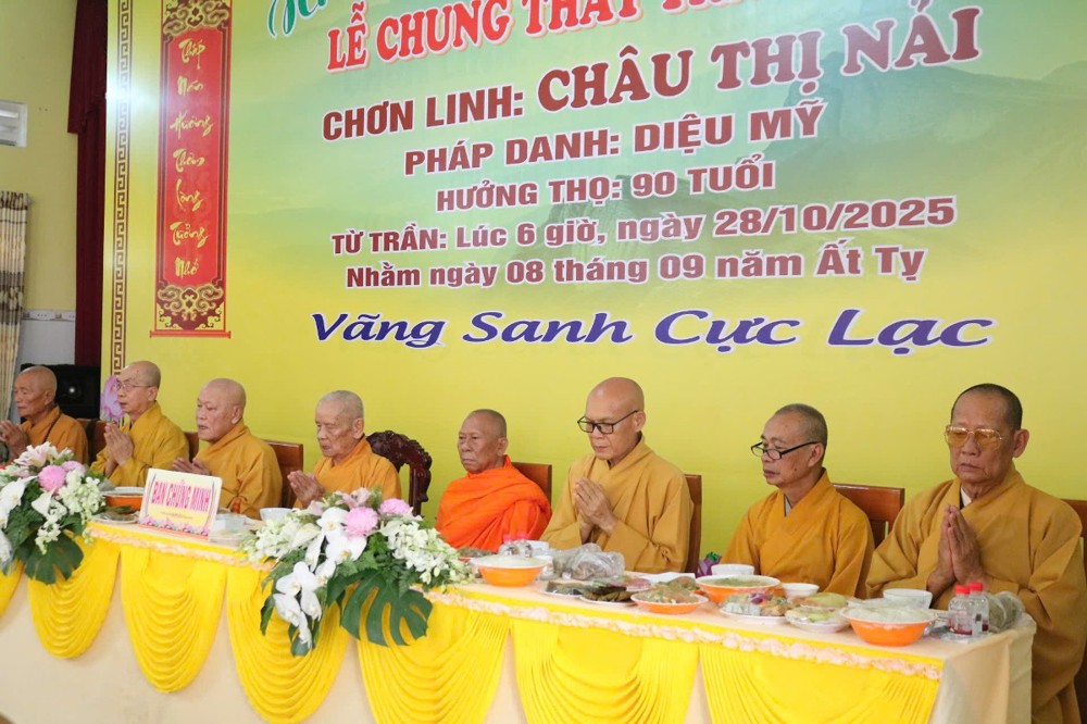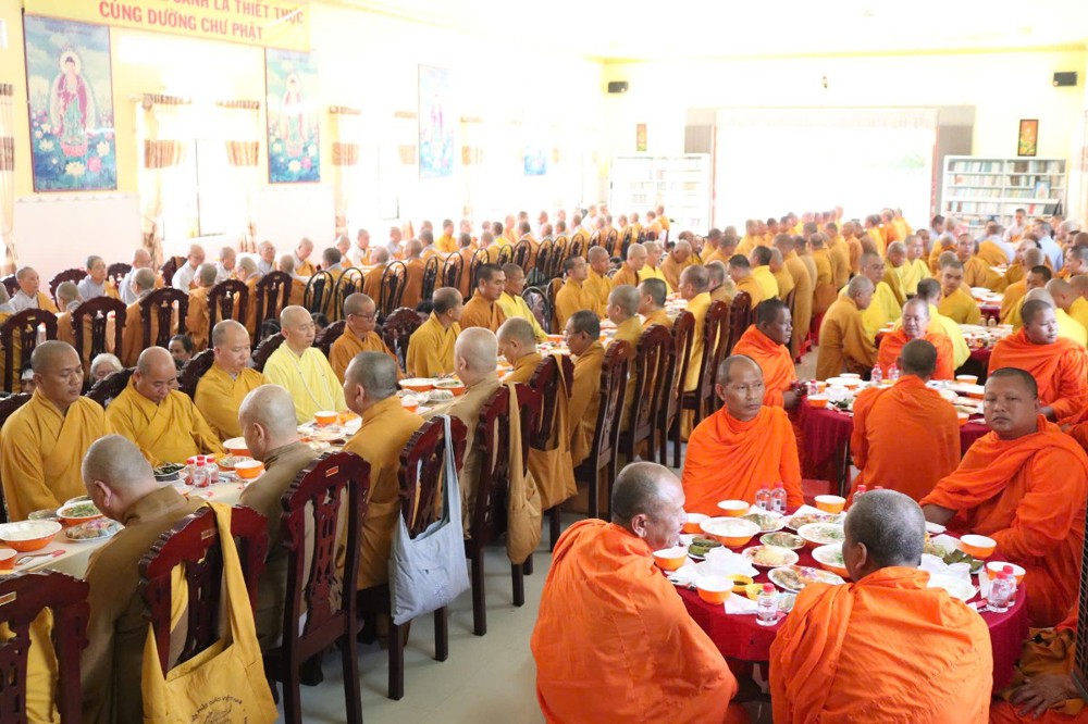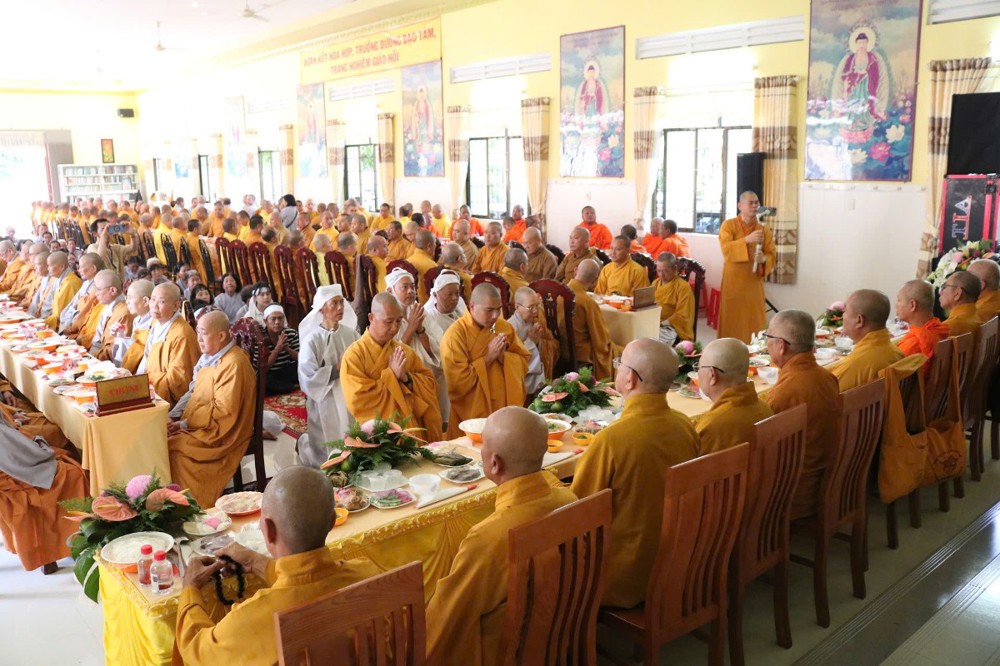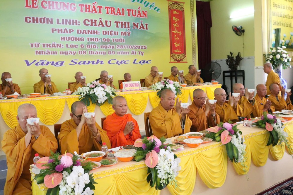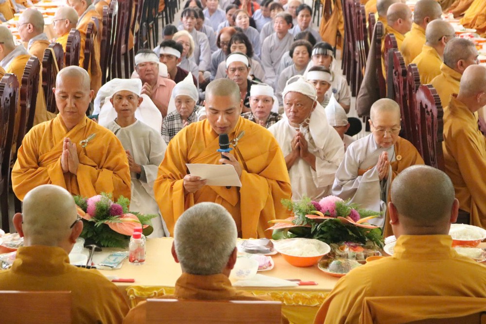 Buổi lễ khép lại, sau lời phát biểu cảm tạ của ĐĐ.Thích Thiện Lộc, chư Tôn đức thọ trai trong chánh niệm. Tang gia hiếu quyến thực hiện hiếu sự viên mãn.