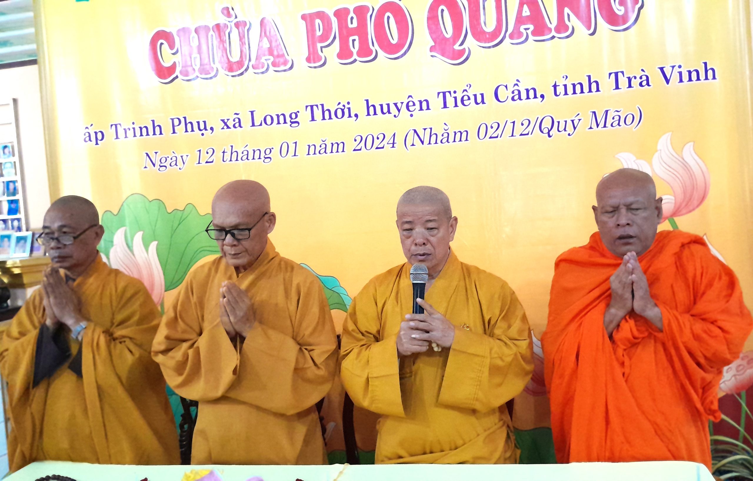 Sáng ngày 12/01/2024 (Nhằm ngày 02/12/năm Quý Mão), được sự chấp thuận của Thường trực GHPGVN tỉnh Trà Vinh, huyện Tiểu Cần và các cấp Chánh quyền địa phương. BTS GHPGVN huyện Tiểu Cần, long trọng tổ chức Lễ Công bố Quyết định Bổ nhiệm Thượng tọa Thích Tâm Chơn làm Trụ trì chùa Phổ Quang – ấp Trinh Phụ, xã Long Thới, huyện Tiểu Cần, tỉnh Trà Vinh.