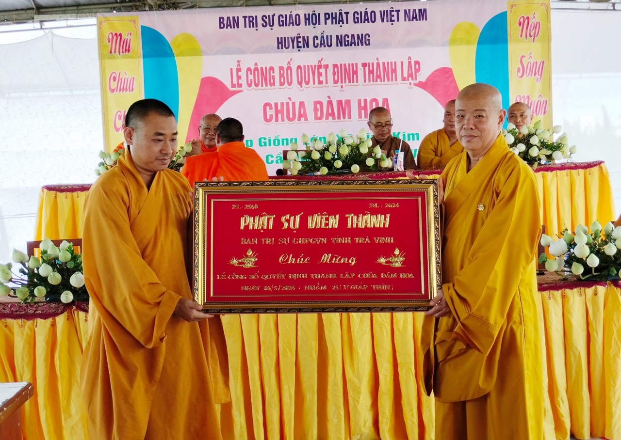 Sáng 3/5/2024 (25/3 năm Giáp Thìn) BTS GHPGVN huyện Cầu Ngang đã long trọng tổ chức Lễ công bố Quyết định thành lập chùa Đàm Hoa tại ấp Giồng Lớn, xã Vinh Kim, huyện Cầu Ngang, tỉnh Trà Vinh.