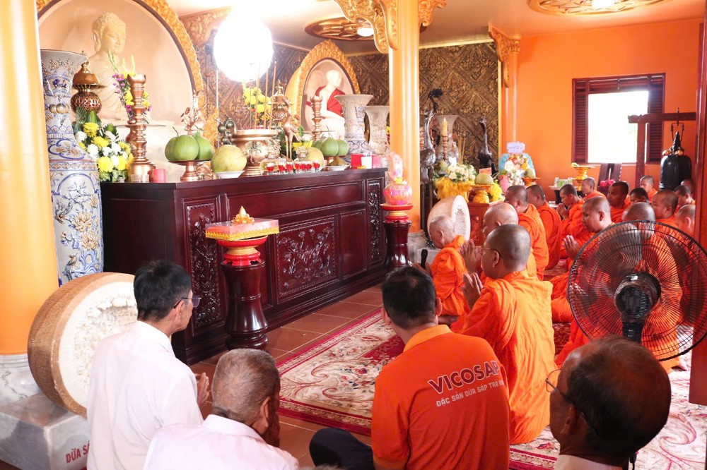 Chứng minh và tham dự buổi lễ có HT.Thạch Sok Xane – Phó Chủ tịch HĐTS, Trưởng BTS GHPGVN tỉnh Vĩnh Long, Chủ tịch Hội Đoàn kết Sư sãi yêu nước (ĐKSSYN) tỉnh; TT.Thạch Thảo – Ủy viên BTS GHPGVN tỉnh, Ủy viên Thường trực Ban chấp hành Hội ĐKSSYN tỉnh; ông Trần Duy Linh – Giám đốc Công ty Vicosap, Trưởng ban Quản trị Bảo tàng dừa sáp cùng chư Tăng đại diện các chùa và đông đảo Phật tử đồng tham dự.