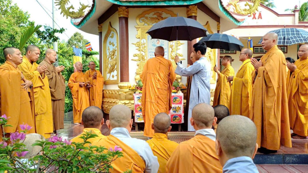 Quang lâm chứng minh buổi lễ có sự hiện diện của HT. Thích Tâm Linh, HT. Thích Phước Minh – đồng Chứng minh BTS GHPHVN tỉnh Trà Vinh; HT. Thích Trí Minh – Ủy viên HĐTS, Phó Trưởng ban Thường trực BTS GHPGVN tỉnh; HT. Thích Huệ Pháp – Ủy viên HĐTS, Phó ban kiêm Trưởng ban Tăng sự GHPGVN tỉnh; TT. Thích Huệ Thọ – Trụ trì chùa Phước Lâm (TP.Bến Tre); NT. Thích nữ Như Thiền – Chứng minh PBNG GHPGVN tỉnh; cùng chư Tôn đức Tăng Ni Trụ trì các cơ sở tự viện và Phật tử trong tỉnh đồng tham dự.