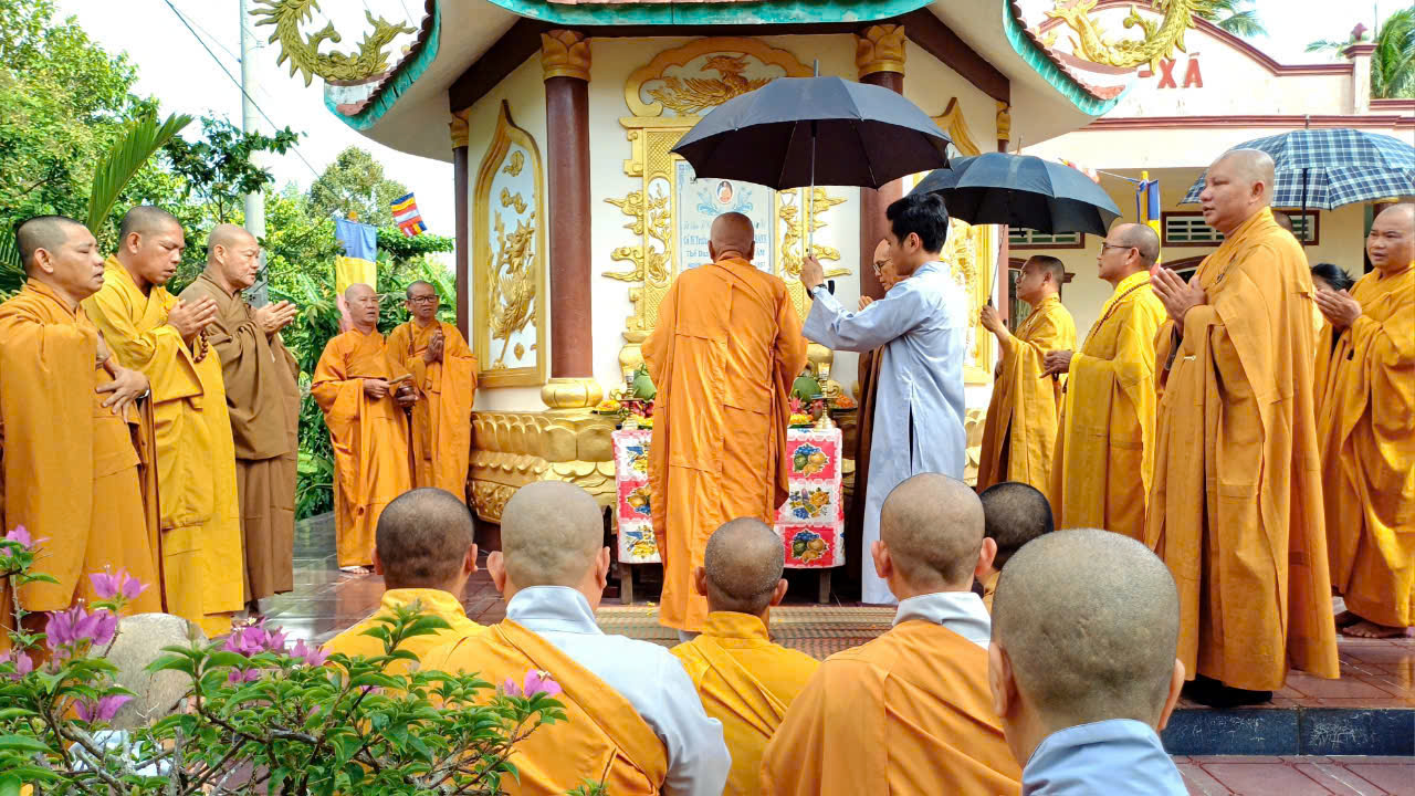 Tại buổi lễ, thay mặt môn đồ pháp quyến TT. Thích Minh Nhựt – Phó ban kiêm Trưởng Nghi lễ BTS GHPGVN tỉnh Trà Vinh kính dâng lời tác bạch lễ cúng dường chư Tôn đức hiện tiền.