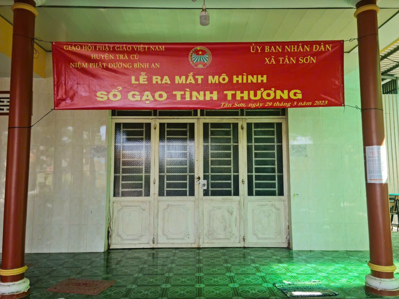 Chiều ngày 29/3/2023 (nhằm ngày 8/2 Nhuận năm Quý Mão), Niệm Phật Đường Bình An kết hợp với Ủy ban Nhân dân xã Tân Sơn ra mắt mô hình “Sổ gạo Tình thương” tặng cho 7 hộ gia đình đặc biệt khó khăn và neo đơn. Tham dự buổi lễ có ông Lương Hữu Thanh, Chủ tịch Hội Nông dân huyện Trà Cú; ông Trần Văn Đồng, Chủ tịch xã Tân Sơn; cùng Hội Nông dân xã và Đài truyền thanh huyện Trà Cú và 15 hộ gia đình khó khăn trong xã.