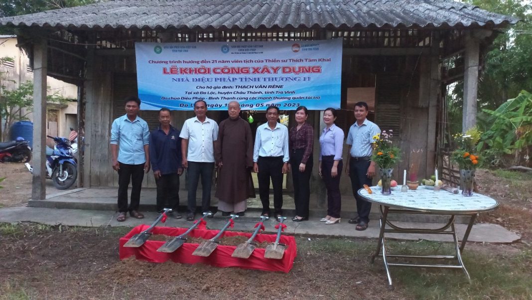 Sáng ngày 19/5/2023 (nhằm ngày 1/4 năm Quý Mão) Nhằm chào mừng Đại lễ Phật đản PL.2567 và hướng tới 21 năm Thiền sư Thích Tâm Khai viên tịch, Ban Trị sự GHPGVN tỉnh Trà Vinh kết hợp cùng chùa Diệu Pháp tại (Q.Bình Thạnh, TP.HCM) và UBMTTQVN tỉnh tổ chức Lễ khởi công xây dựng 8 nhà Diệu Pháp Tình Thương cho các hộ gia đình đang gặp khó khăn về nhà ở trên địa bàn tỉnh.