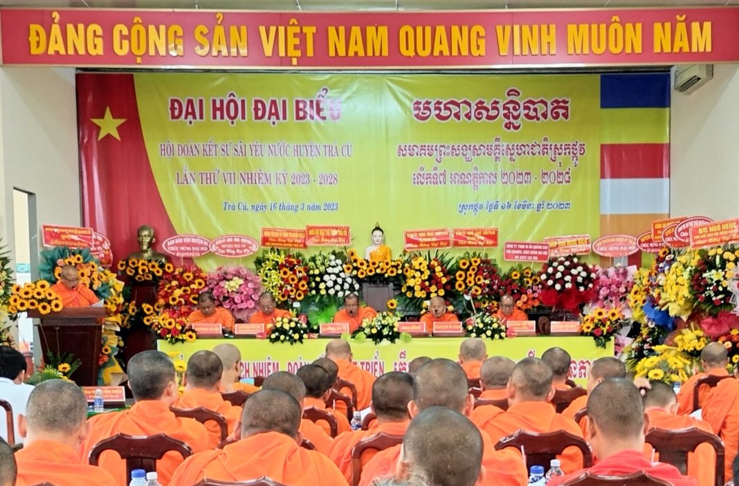 Sau khi kết thúc phiên họp trù bị, chư Tăng cùng quý Đại hội đã đến dâng hương tưởng niệm, kỳ siêu hai vị Hòa thượng Liệt sĩ tại chùa Kosla và các anh hùng liệt sĩ tại nghĩa trang huyện, trước khi chính thức diễn ra Đại hội đại biểu Hội ĐKSSYN huyện Trà Cú lần thứ VII, nhiệm kỳ 2023-2028 vào sáng ngày 16/3/2023.