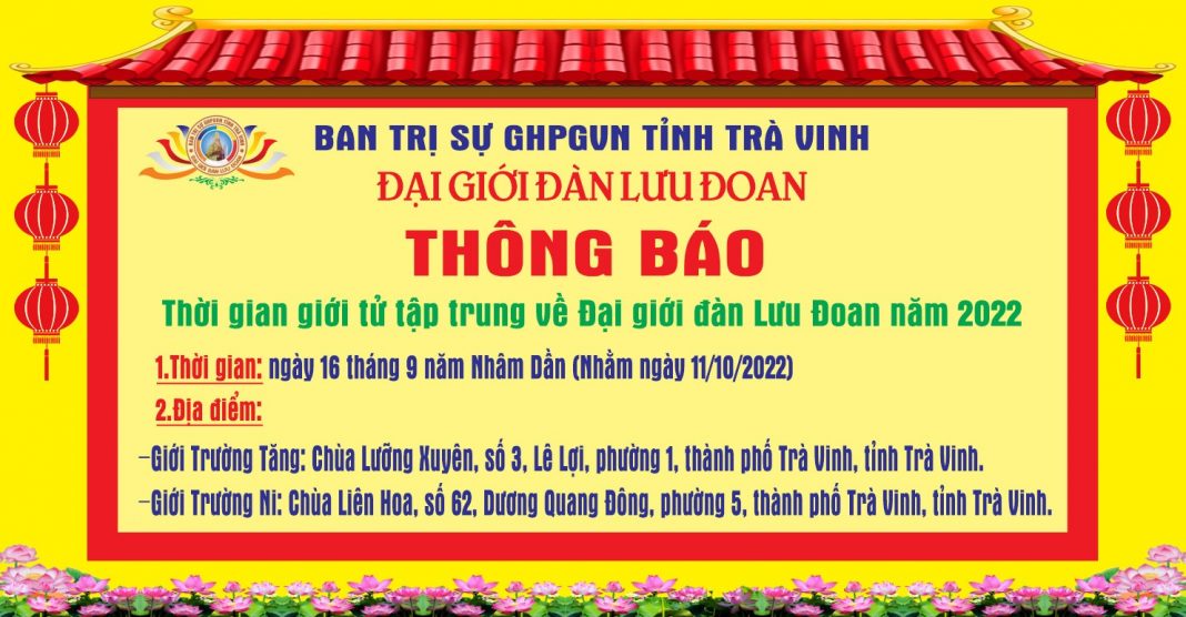 Thông báo - Thư mời Thông Báo Thời Gian Tập Trung Đại Giới Đàn Lưu Đoan 6 Tháng 10, 2022 316 FacebookTwitterPinterestWhatsApp