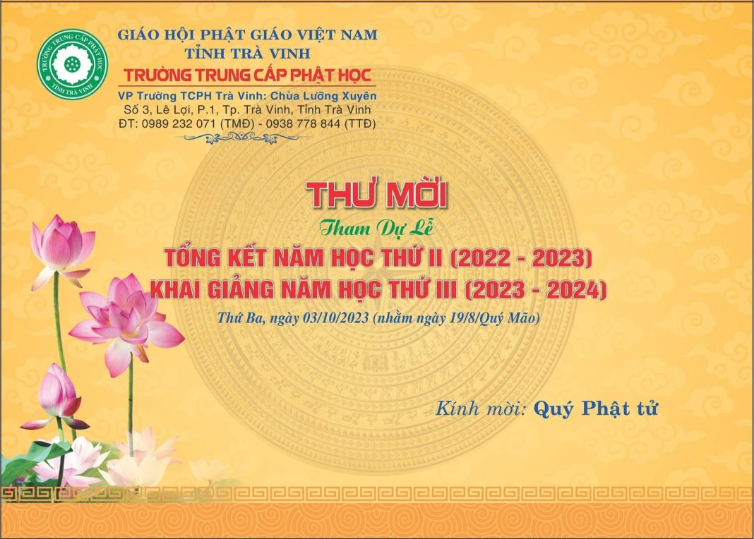 Thông báo - Thư mời THƯ MỜI: Tham dự lễ tổng kết năm học thứ II và khai giảng năm học thứ III Trường Trung cấp Phật học Trà Vinh 20 Tháng 9, 2023 173 FacebookTwitterPinterestWhatsApp