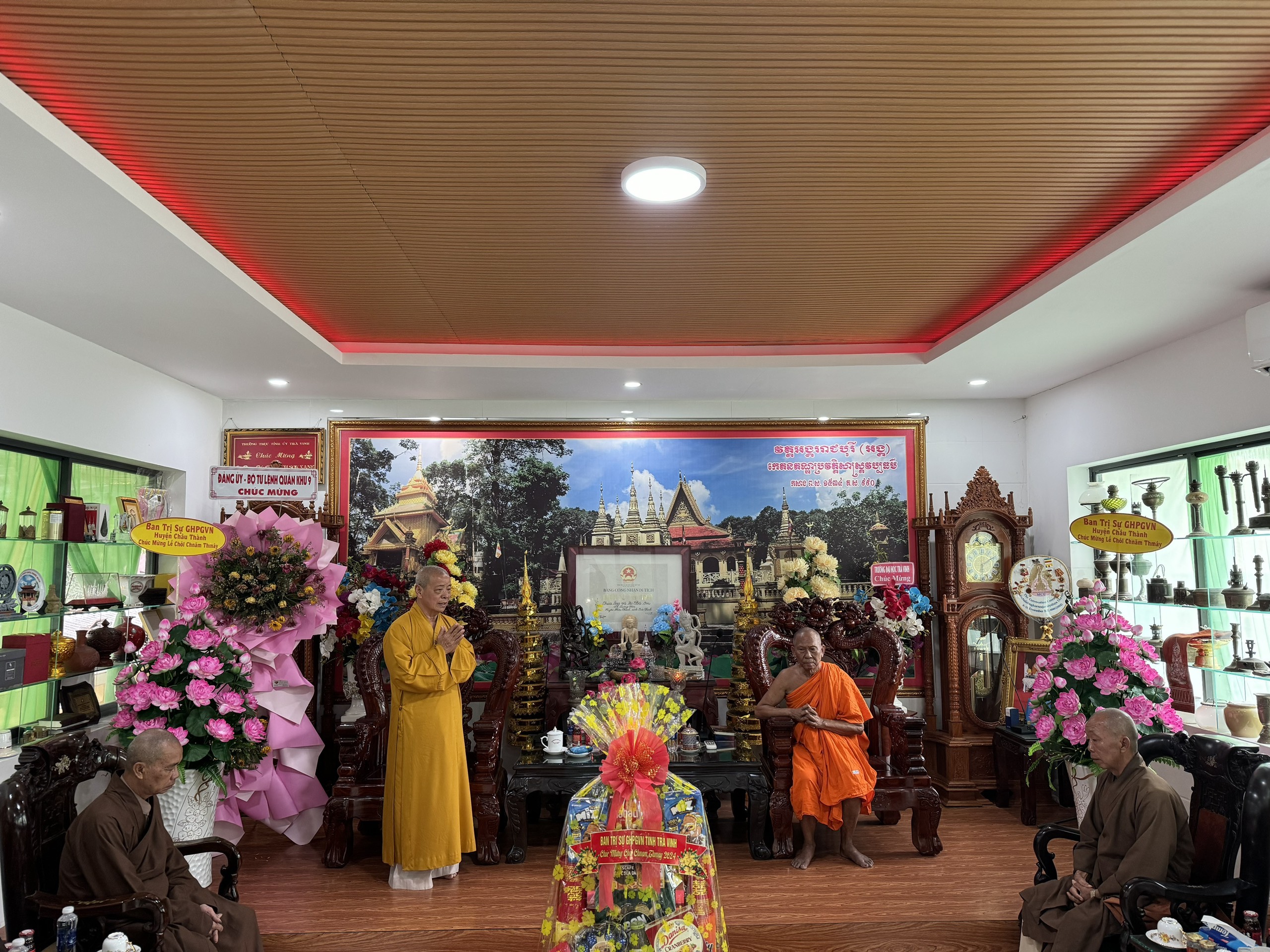 Tại chùa Âng (Phường 8, TP. Trà Vinh) HT. Thích Trí Minh đã thay mặt cho Thường trực BTS Phật giáo tỉnh gởi lời khánh tuế tới HT. Thạch Sok Xane, kính chúc Hòa thượng cùng chư Tăng Phật giáo Nam tông và cộng đồng Phật tử trên toàn tỉnh, đón một năm mới với nhiều niềm vui, an lành và hạnh phúc.
