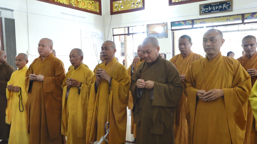 Trước linh đài khói hương quyện tỏa, chư Tôn đức BTS GHPGVN tỉnh đã dâng nén hương kính viếng hương linh thân mẫu của SC. Thích Nữ Trung Tường, nguyện cầu hương linh cụ bà được siêu thoát về cảnh giới an lành.
