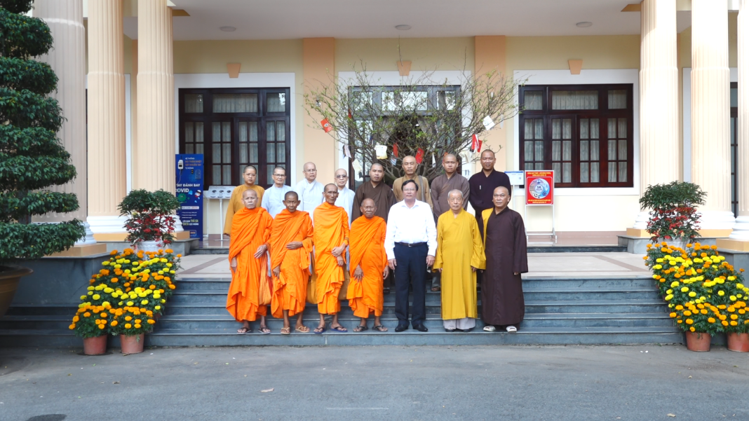 Cùng đi trong đoàn còn có HT. Thích Trí Minh – UV HĐTS, Phó trưởng ban Thường trực BTS GHPGVN tỉnh; HT. Thích Huệ Pháp – UV HĐTS, Phó BTS kiêm Trưởng Ban Tăng sự Phật giáo tỉnh; HT. Kim Thone – UV HĐTS, Phó Chủ tịch Hội ĐKSSYN tỉnh cùng chư Tôn đức Thường trực BTS và Hội ĐKSSYN tỉnh.