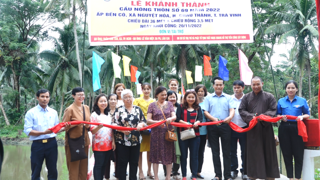 PGTV – Sáng ngày 20/11/2022, ĐĐ. Thích Minh Trí – Phó thư ký kiêm Chánh Văn phòng BTS, Trưởng Ban thông tin truyền thông GHPGVN tỉnh đã kết hợp cùng các cấp chính quyền địa phương và nhà tài trợ khánh thành và bàn giao cầu giao thông nông thôn số 69 tại ấp Bến Có, xã Nguyệt Hóa, huyện Châu Thành, tỉnh Trà Vinh.