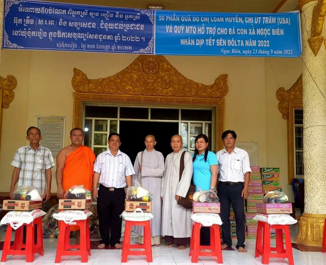 PGTV – Ngày 23/9/2022 ( nhằm ngày 28/8 năm Nhâm Dần) nhân dịp lễ Sêne Đôlta năm 2022 của đồng bào dân tộc, Chùa Pray Vo kết hợp cùng chính quyền địa phương và nhà hảo tâm tổ chức trao tặng 50 phần quà cho bà con Khmer khó khăn tại xã Ngọc Biên, huyện Trà Cú, tỉnh Trà Vinh.