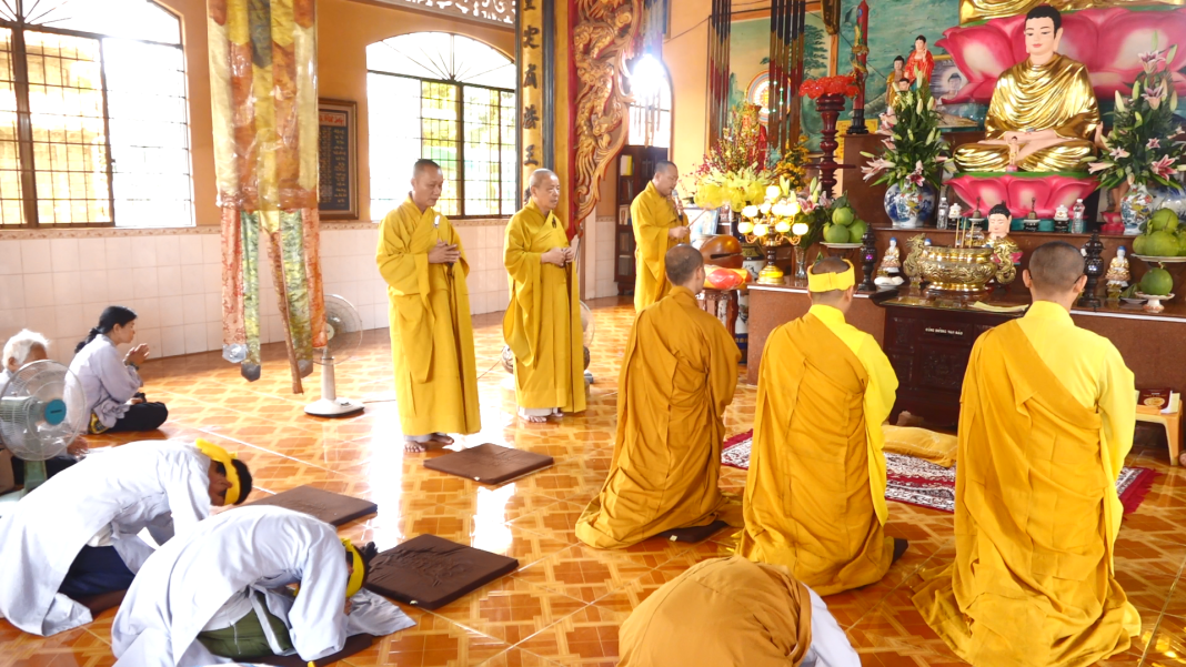 Trước Đại hùng bửu điện trong không khí trang nghiêm, chư Tôn đức đã niêm bạch Phật, khai kinh tại Chánh điện. Sau đó thực hiện nghi thức sái tịnh và nhiễu tháp trong khuôn viên chùa Như Pháp. Tiếp đến tại Tổ đường cử hành lễ Cung tiến Giác linh, môn đồ đệ tử vân tập lễ bái, dâng hương và chúc thực lên Giác linh cố Thượng tọa Ân sư.
