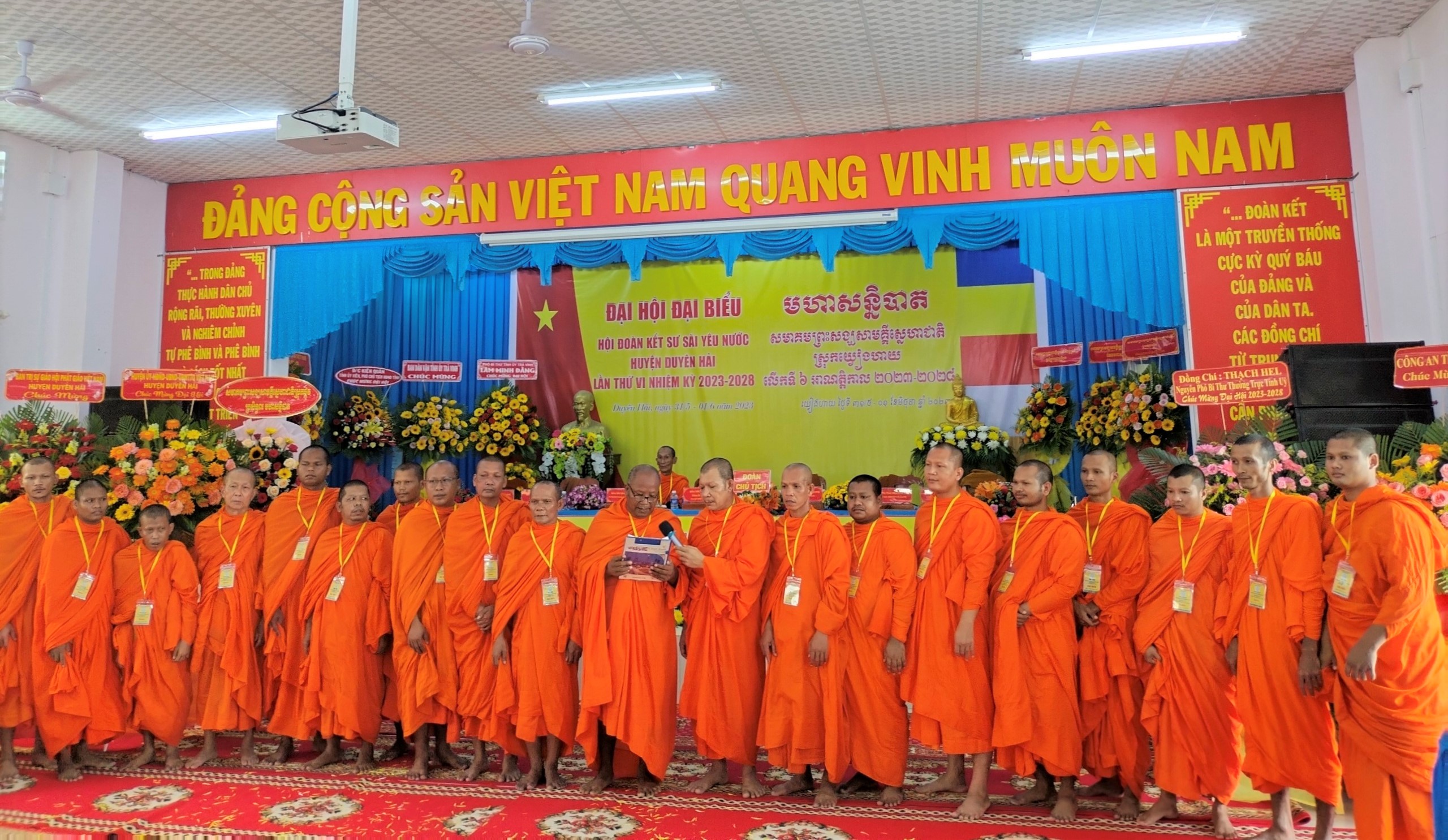 Sáng ngày 01/06/2023 (nhằm ngày 14/4 năm Quý Mão) tại Hội trường UBND xã Ngũ Lạc (ấp Rọ Say, xã Ngũ Lạc, huyện Duyên Hải, tỉnh Trà Vinh) long trọng diễn ra Đại hội Đại biểu Hội Đoàn kết Sư sãi yêu nước huyện Duyên Hải nhiệm kỳ VI 2023-2028.